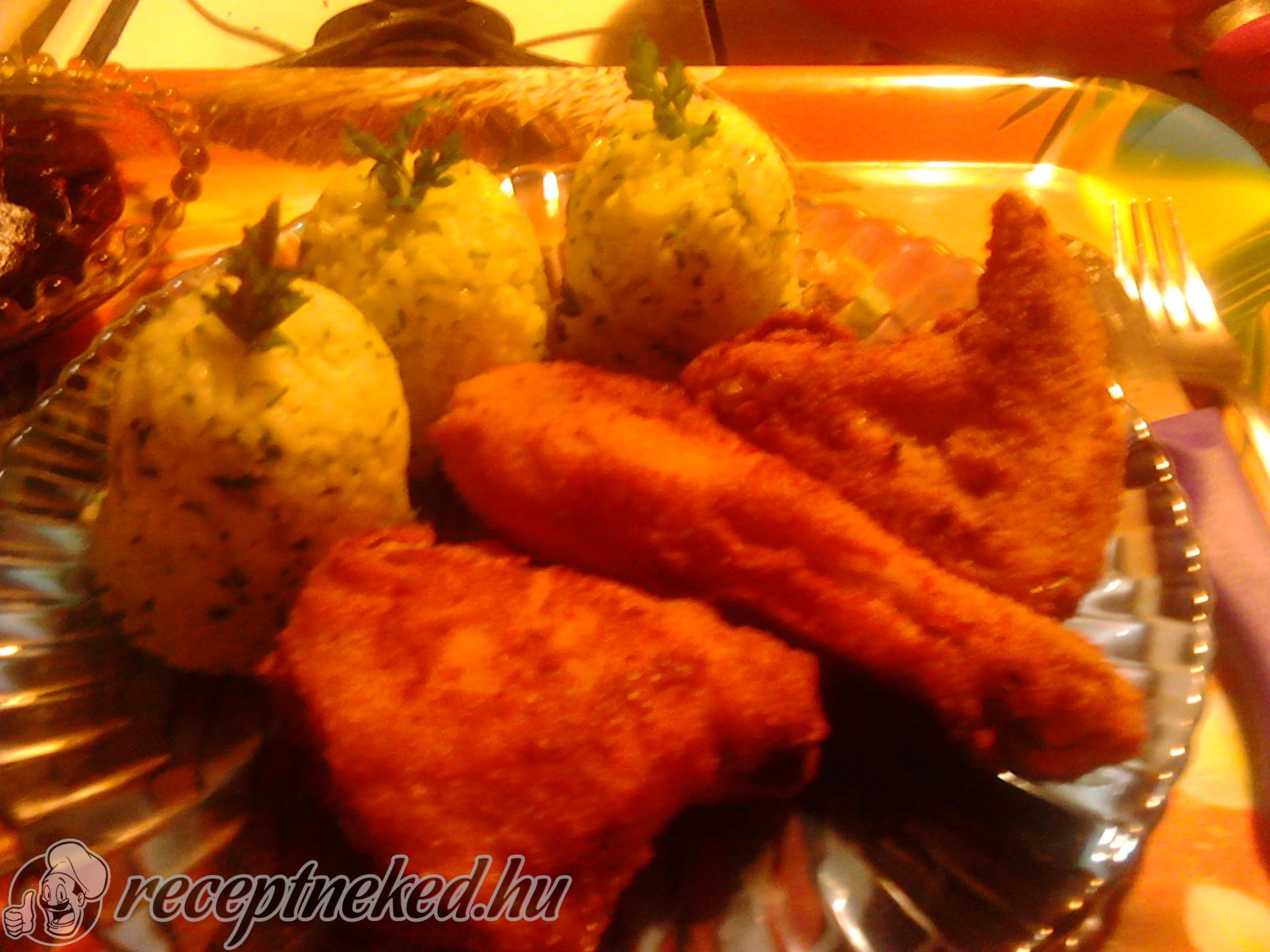 A bundázott húst bő, sistergő olajban süssük aranybarnára.