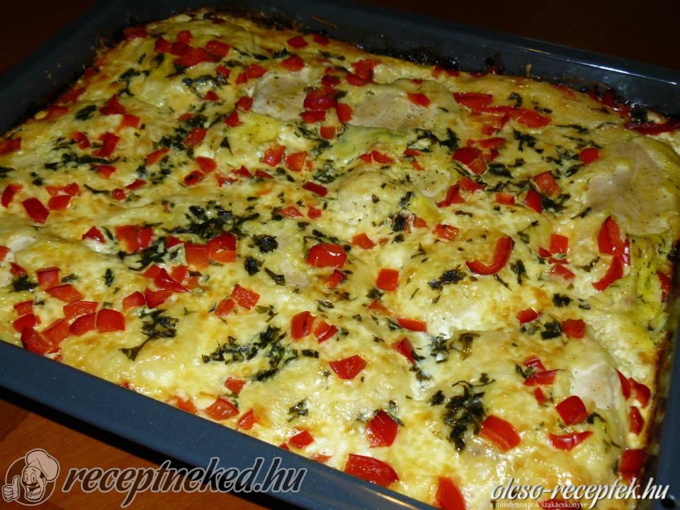 Alufóliával lefedve 200 °C-os sütőben 50–60 perc alatt készre sütjük. A sütés végén levesszük a fóliát, hogy a teteje szépen megpiruljon.
