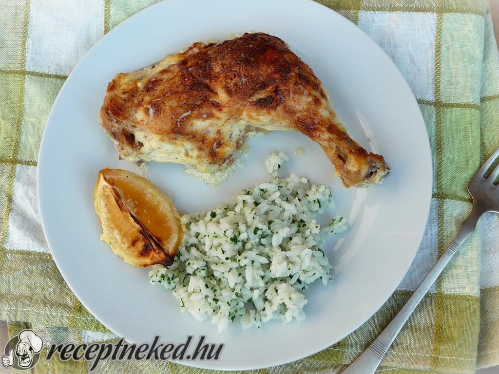 A maradék sajtot elkeverjük a tejföllel és a csirkecombokra halmozzuk. Annyi időre tesszük vissza a sütőbe, amíg a hús szépen meg nem pirul, ez kb 20-30 perc.