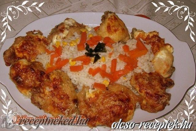 A mártást a tepsibe sorakoztatott csirkére öntjük, majd a tetejét bőven megszórjuk reszelt sajttal és 175 fokra előmelegített sütőben sütjük 35-45 percig (amíg a sajt szépen el nem olvad a tetején).