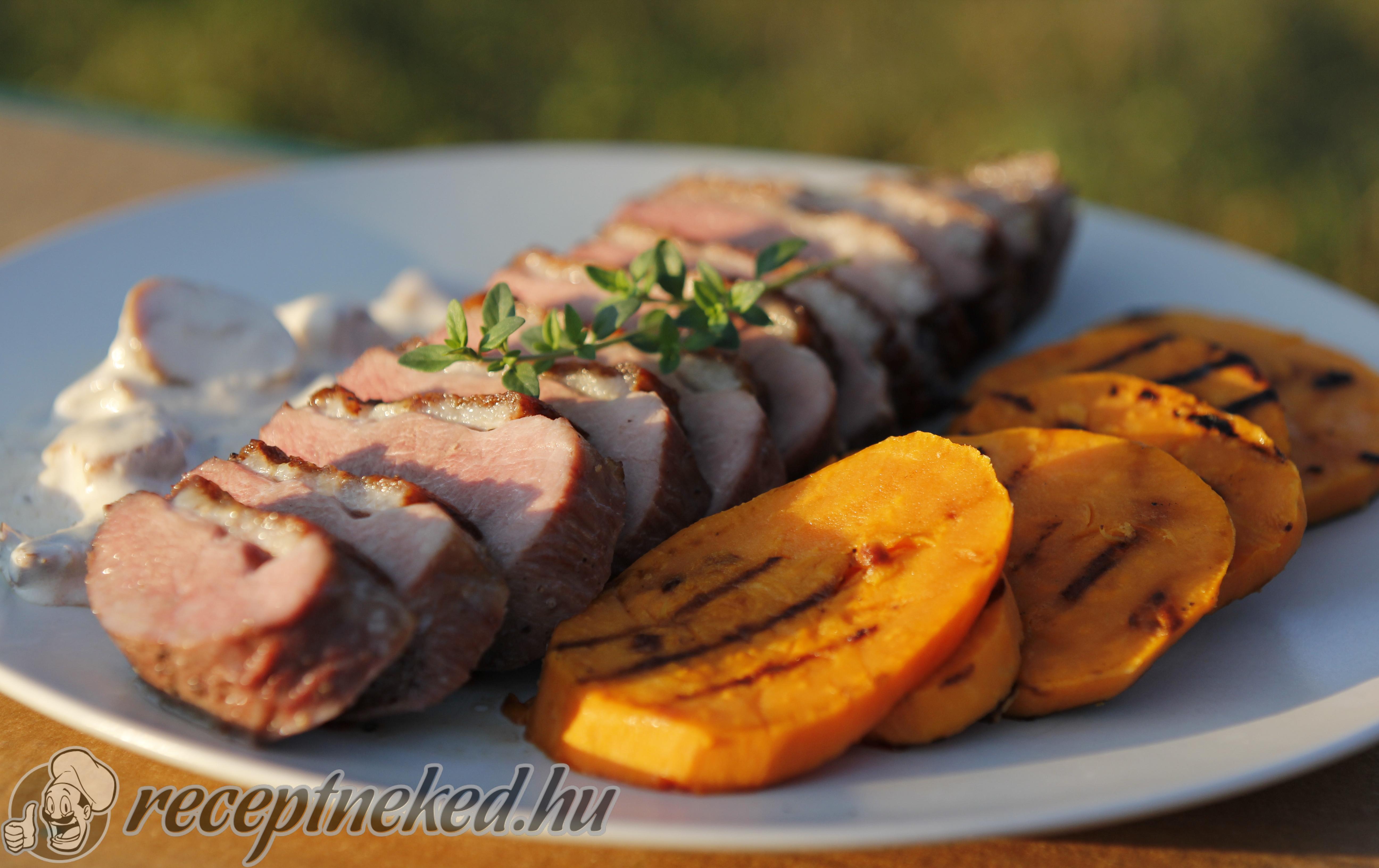 Az édesburgonyát meghámozzuk és felkarikázzuk, majd félpuhára főzzük. Serpenyőben vagy grillezőn megsózva, olívaolajjal megkenve készre sütjük.