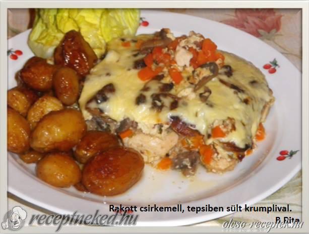 Előmelegített sütőben kb 40 percig sütjük. Megszórjuk reszelt sajttal és további 10 percig sütjük.