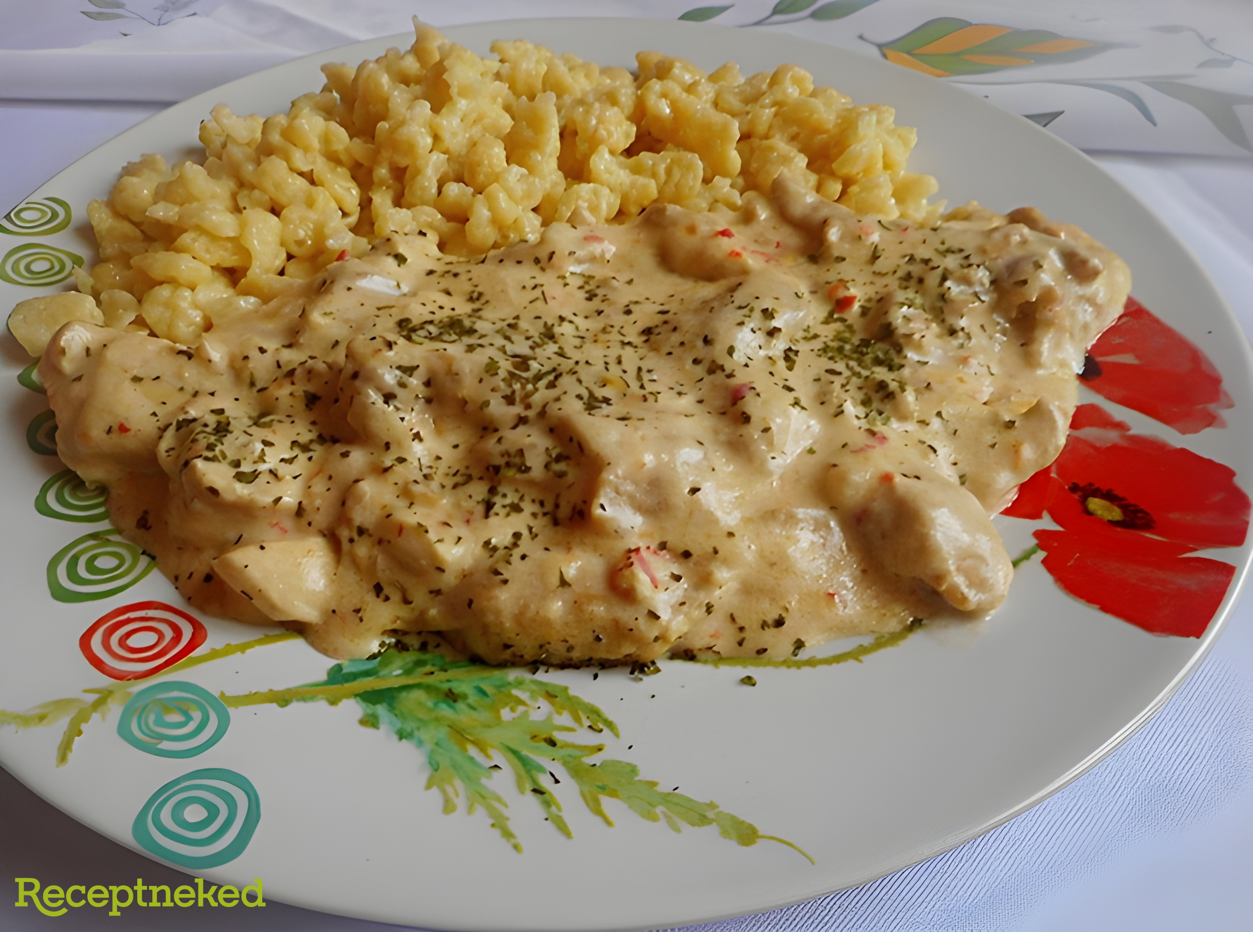 A tejfölt, a lisztet (lisztet csak akkor, ha nem elég sűrű a ragu) és a mustárt összekeverjük, majd mikor a hús puha, felöntjük vele. Pár percig főzzük, aztán belekeverjük a préselt fokhagymát, majd megszórjuk a petrezselyemzölddel.