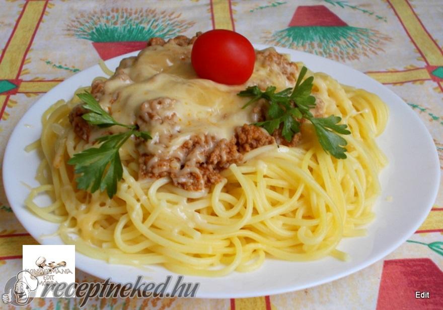 Spagettivel, reszelt sajttal tálaljuk.