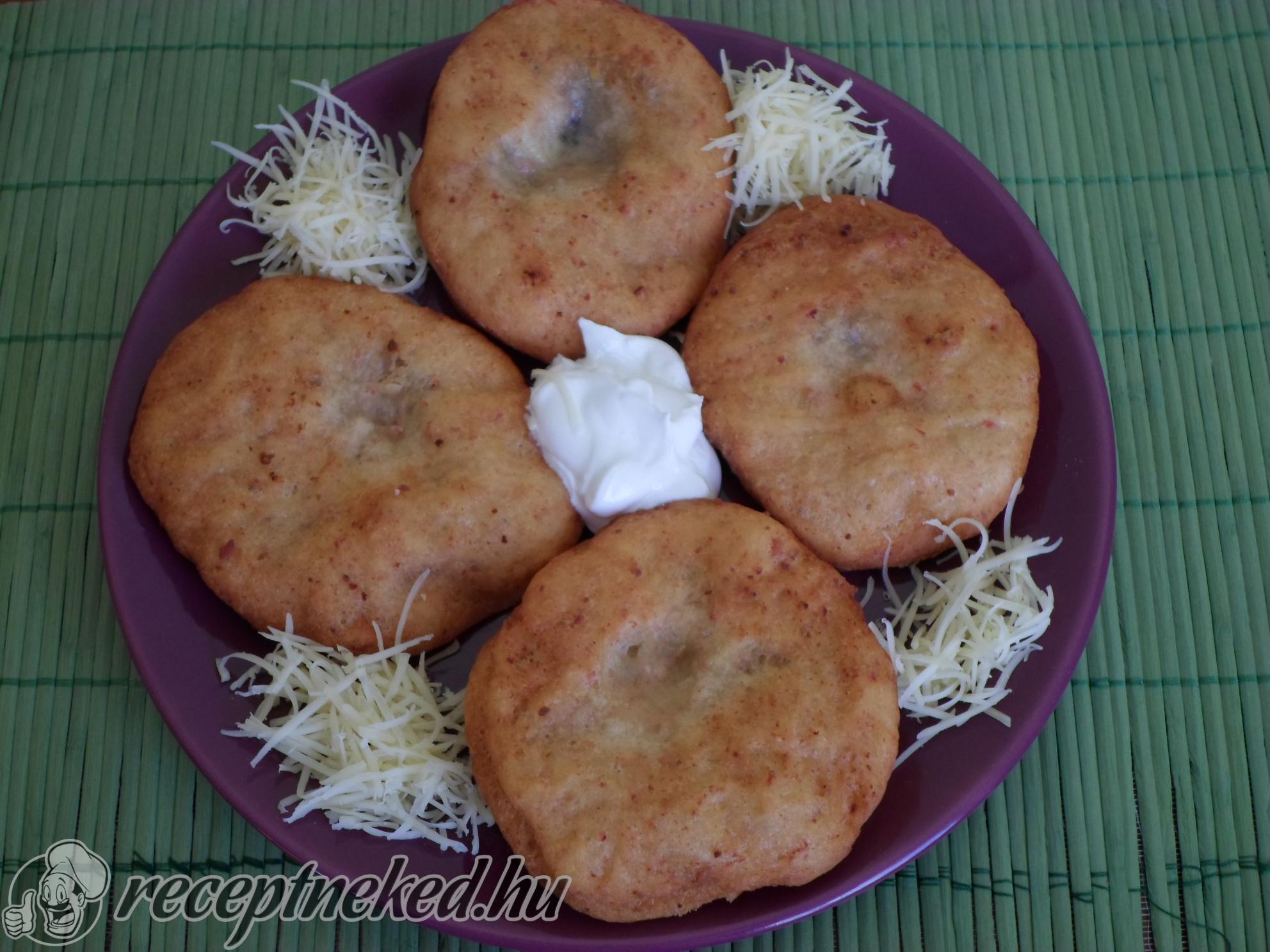 Olajos kézzel a korongokat húzogassuk ki lángos méretűre, majd a forró olajba téve süssük meg mindkét oldalát szép világosra.