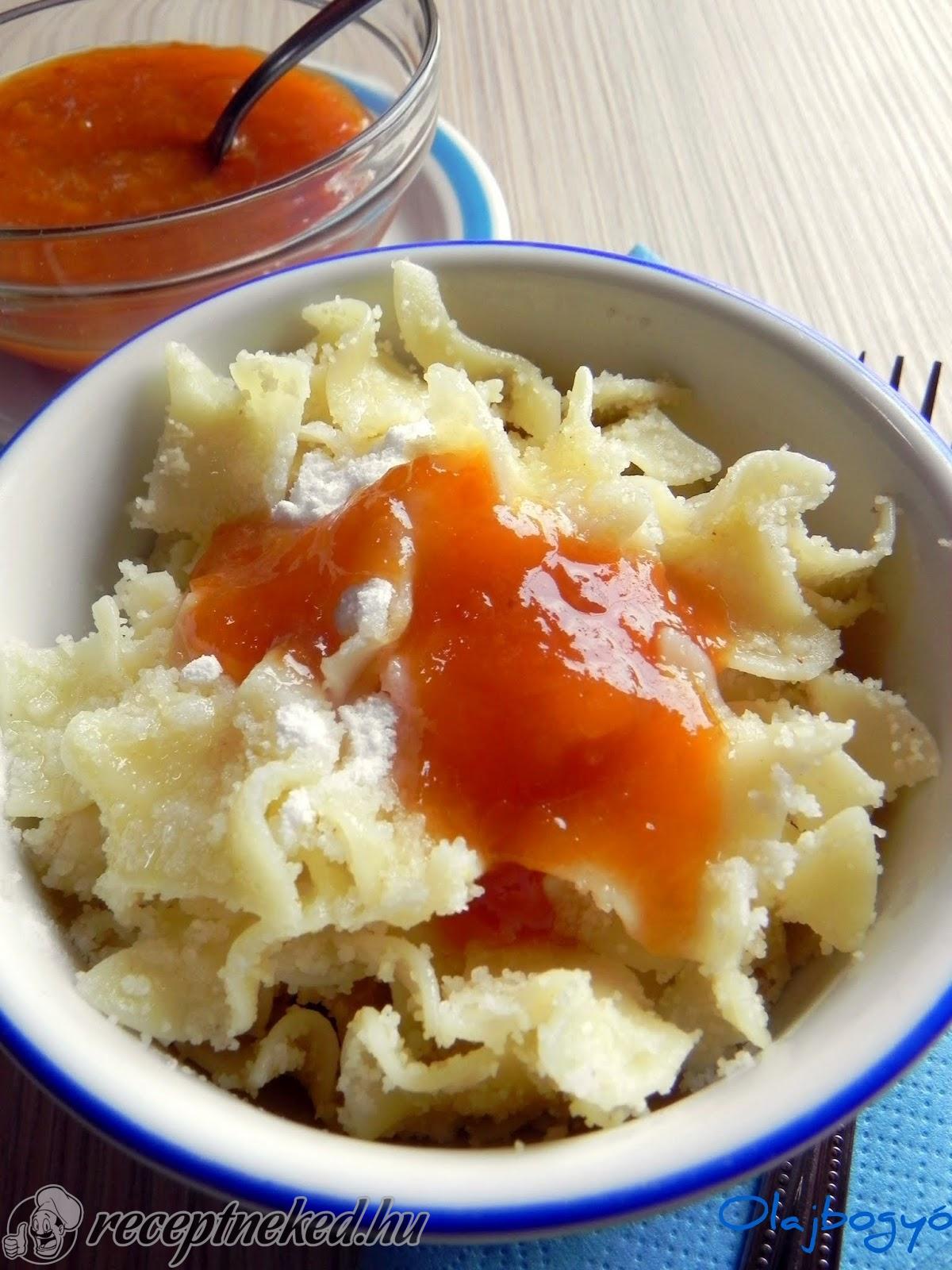 Levesszük a tűzről, majd összeforgatjuk a kifőtt tésztával. Édes változatban baracklekvárral és porcukorral kínáljuk, sósan pedig sóval, borssal és savanyúsággal is finom.