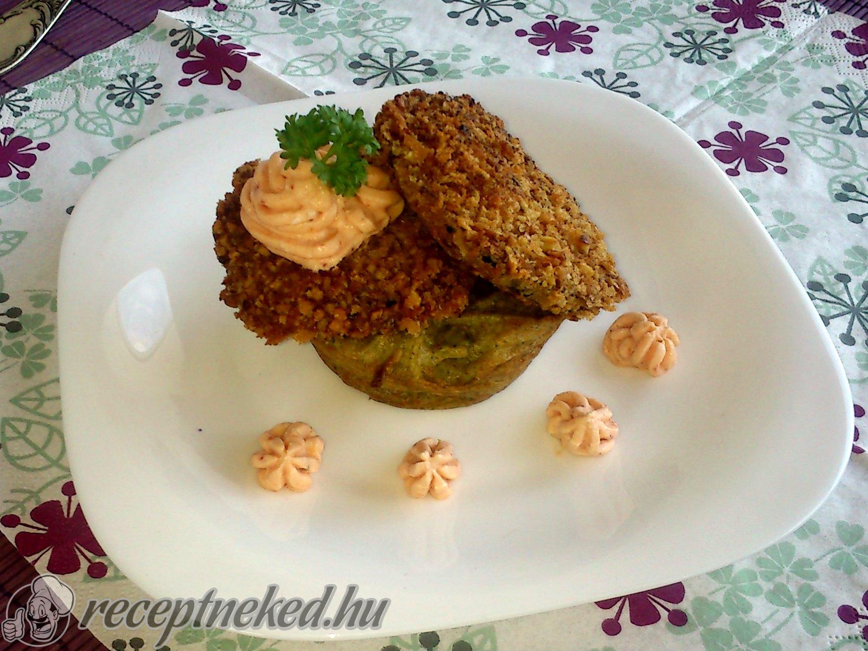 8 muffinformát kivajazunk, elosztjuk bennük a pestos tésztát. 170 fokos sütőbe toljuk, míg a közepe is megsül.