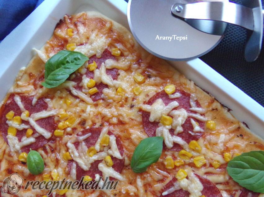 [box style=”info”]Roppant egyszerű pizza a hűtőben talált szalámi, sajt eltüntetésére. Szép nagy adag, de ez is pillanatok alatt elfogyott :-)[/box]