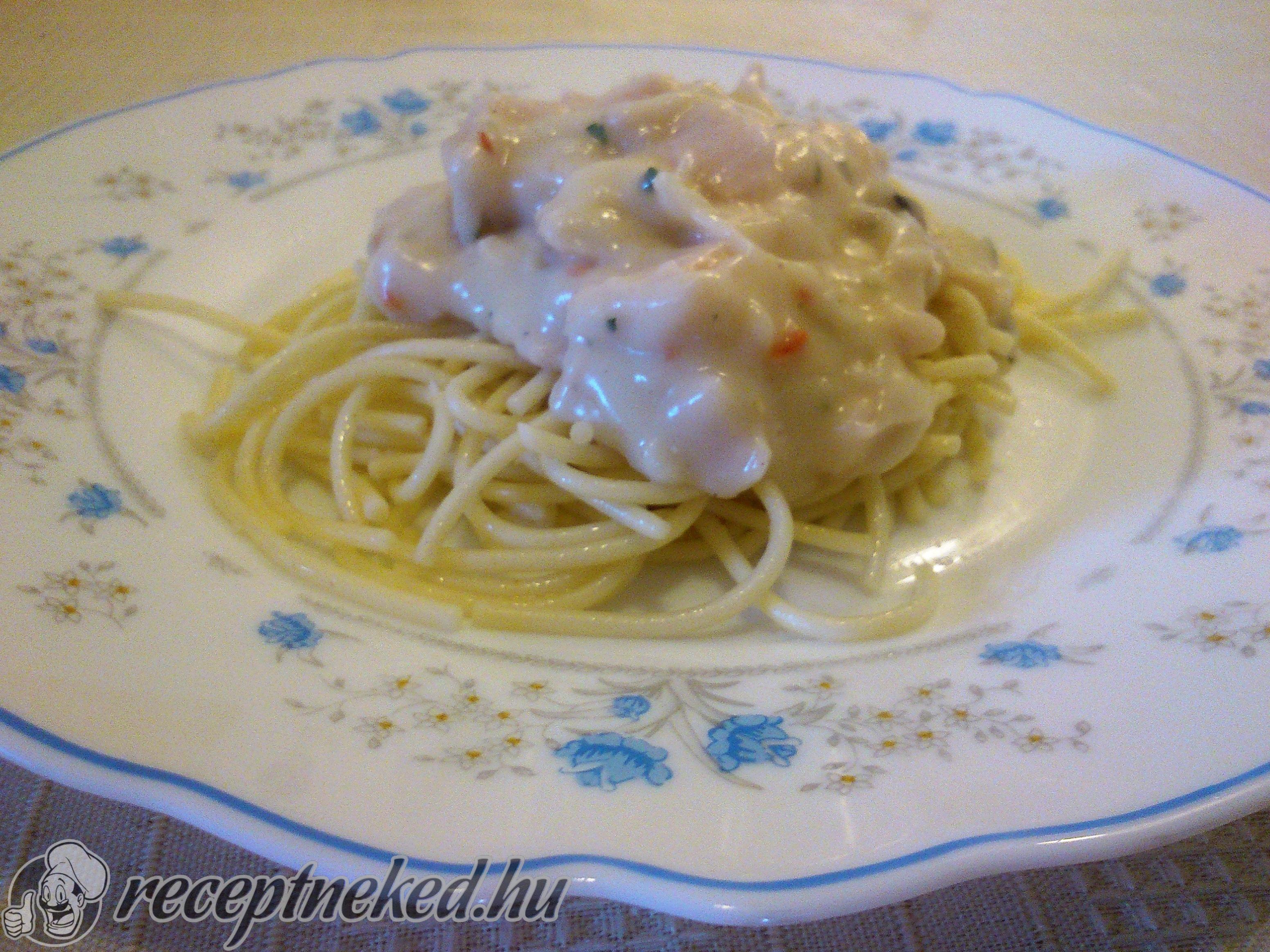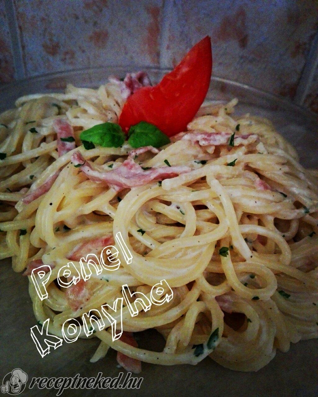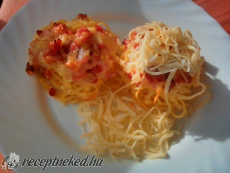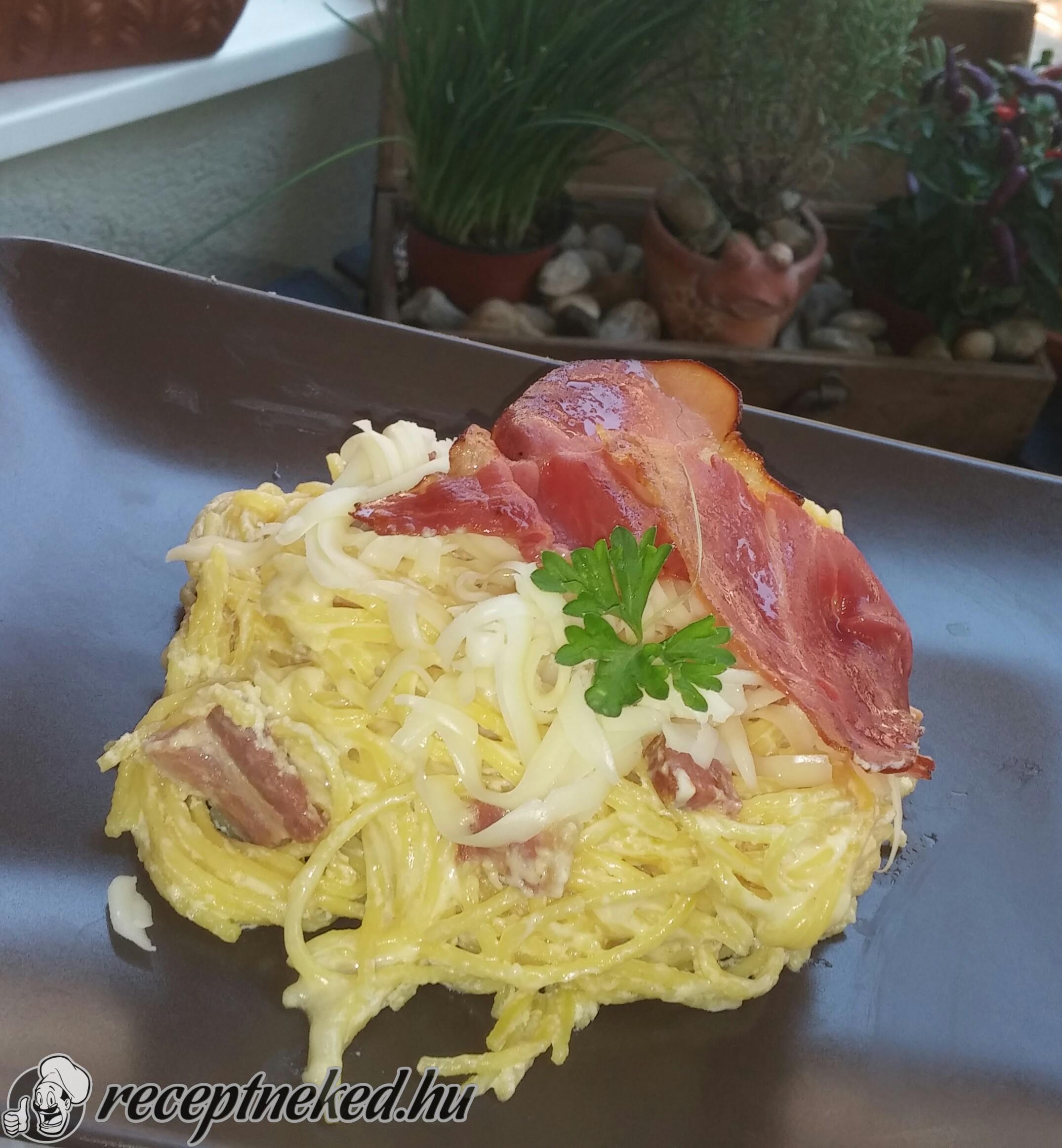 Amint összeforgattuk, akkor folyamatos keverés mellett hozzácsorgatjuk a tojássárgás keveréket és még annyi vizet adunk hozzá, hogy jó krémes legyen az ételünk. 1-2 percig kevergetjük, majd reszelt parmezánnal megszórva tálaljuk.