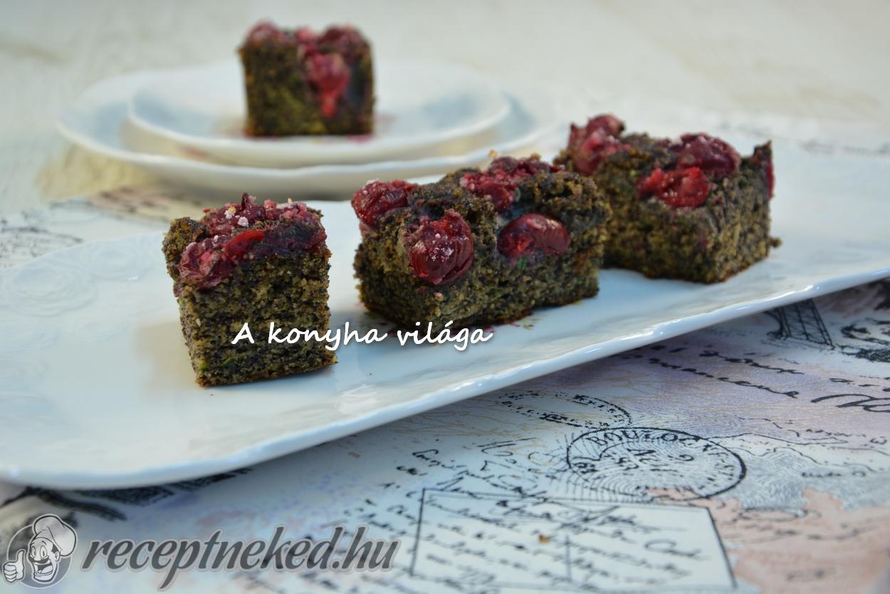 A masszát egy kivajazott és zsemlemorzsával meghintett 20*25 cm-es tepsibe simítjuk és 180 fokon kb 40-45 percig sütjük, majd félidőben rászórjuk a cukros mákot.