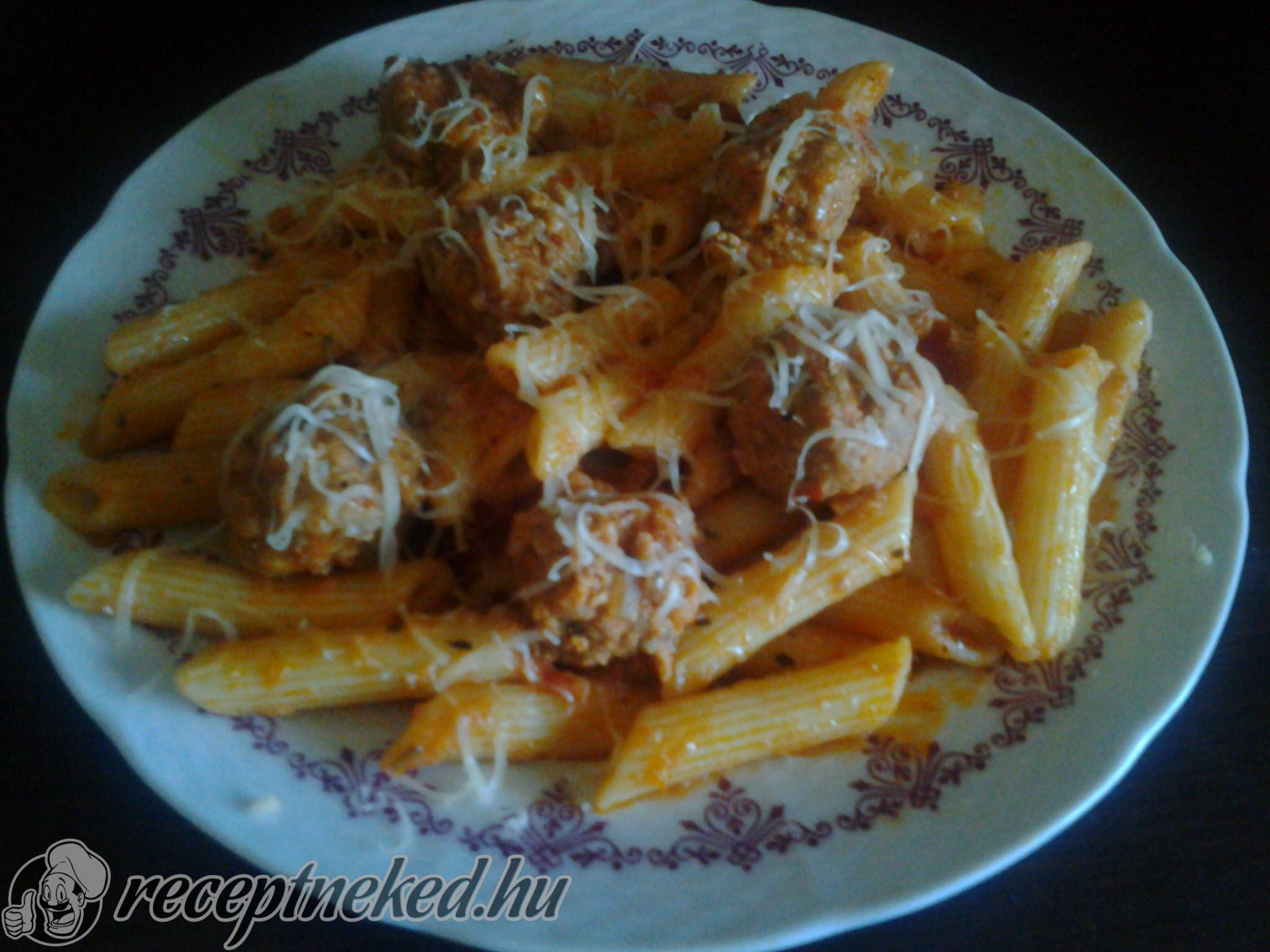 A tésztát sós, lobogó vízben kifőzzük, majd leszűrjük és összekeverjük a mártással. Hozzáadjuk a húsgolyókat is és tálaljuk.