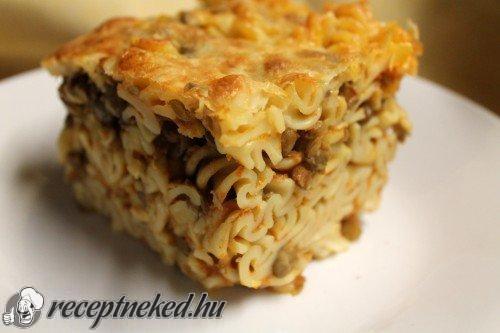 A tésztát is félig kifőzzük a szokott módon, csak forrás előtt elkeverünk a vízben egy húsleves kockát, hogy ízesebb legyen a tészta.