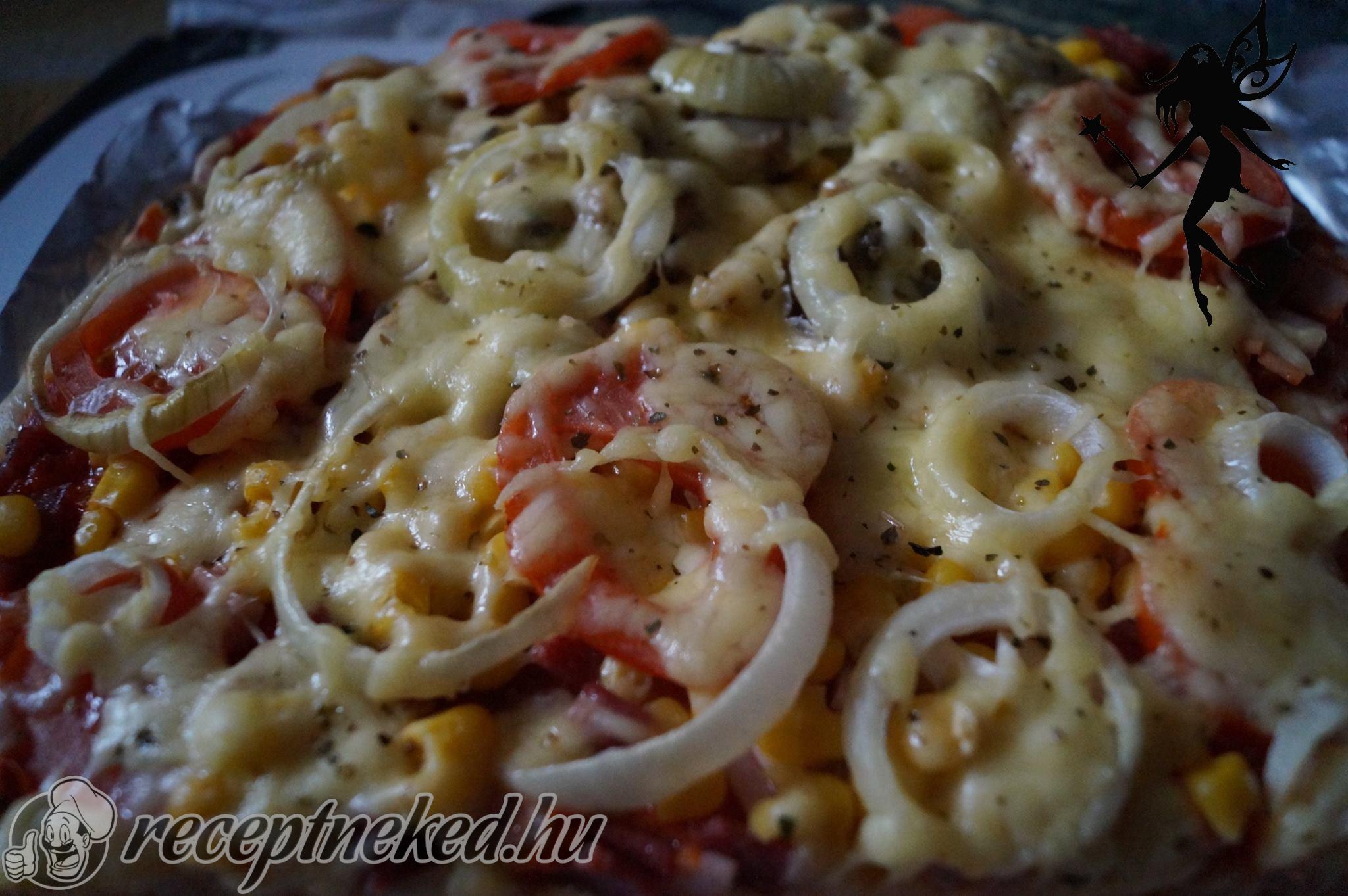 A fokhagymát a paradicsom lével összekeverjük, sót teszünk bele, illetve friss fűszereket: bazsalikomot, oregánót. A pihentetés után a tésztát kinyújtjuk, tetejére a szószt rátesszük, és ízlés szerint a hozzávalókból halmozunk rá.