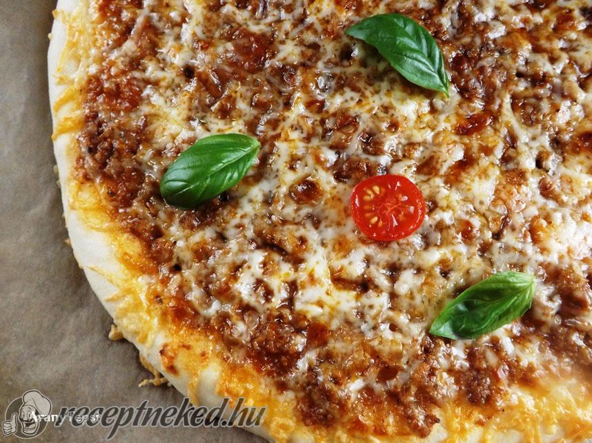 [box style=”info”]Bevallom, kicsit csaltam, és szándékosan több ragut készítettem, amikor bolognait (http://localhost/receptneked.hu/teszta/bolognai-spagetti-kicsit-maskeppen/) kért a család. Így kipróbálhattam, hogy milyen pizza feltétként. Két kör alakú, közepes méretű pizza lett, aminek vékony tésztáját közepesen vastag feltét takart.