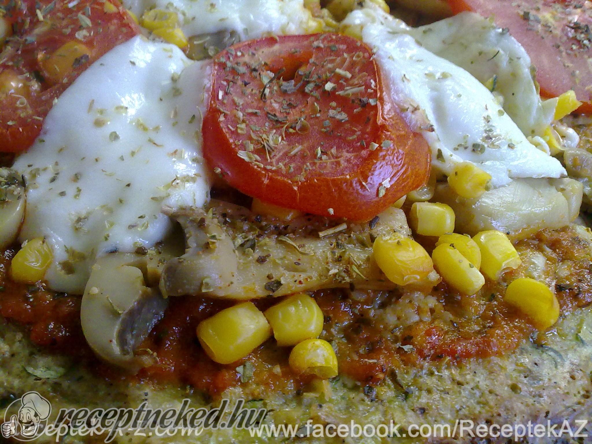 Ha elkészült, kivesszük a sütőből és kb 5 percet hűlni hagyjuk, majd lekenjük paradicsomszósszal, megszórjuk pizzafűszerrel és tetszés szerinti feltéttel megrakjuk. Visszatesszük a sütőbe még kb 10-15 percre (amíg a sajt meg nem olvad).