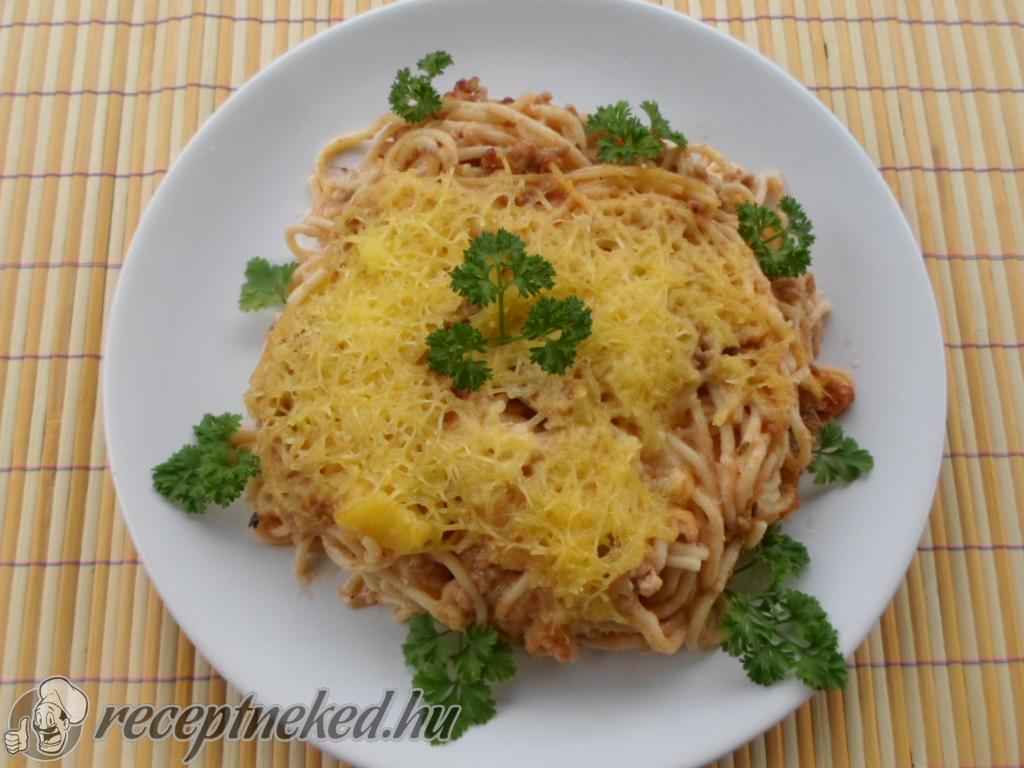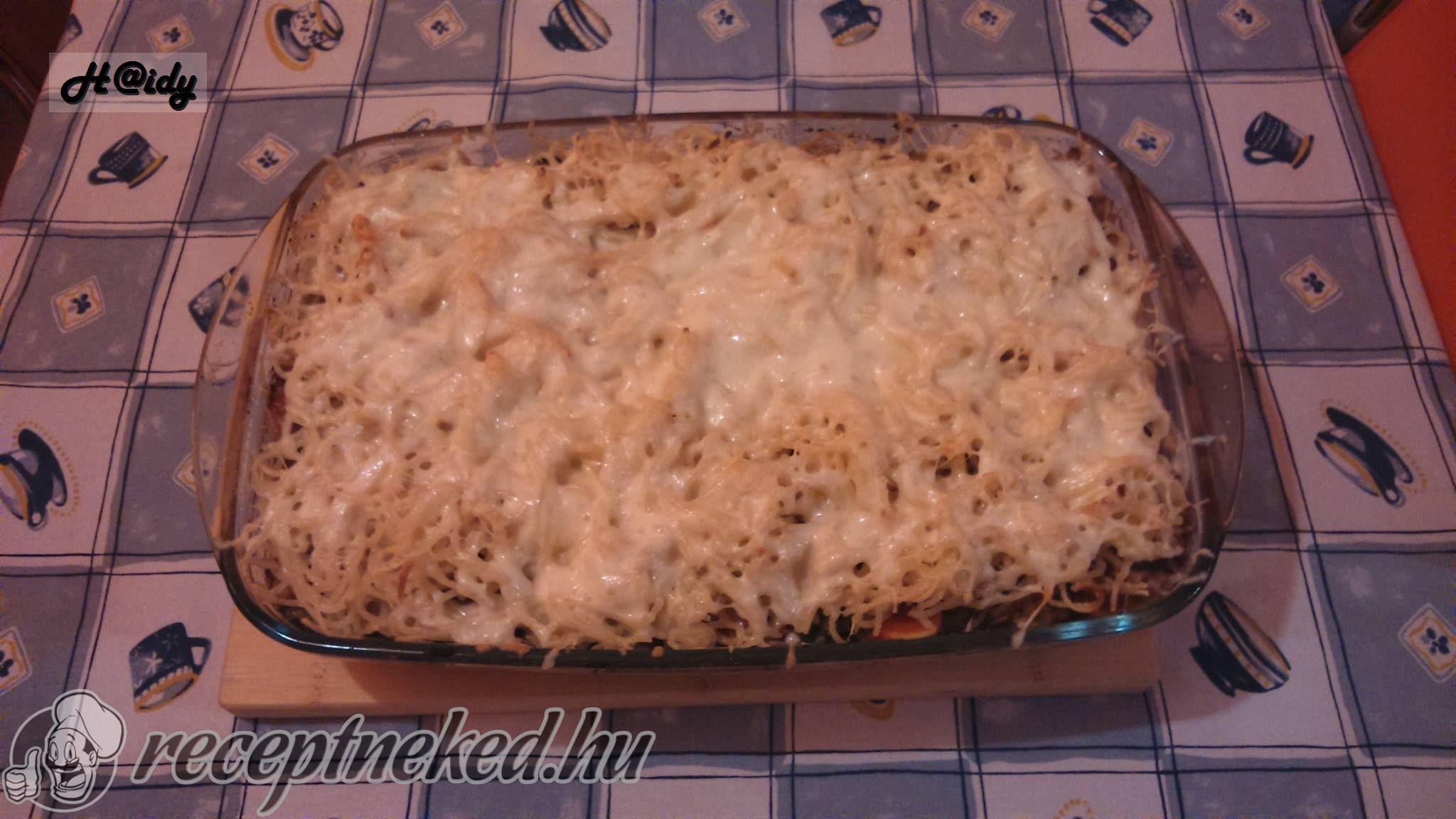 A leszűrt tésztához keverjük a ragut és kiolajozott, hőálló edénybe halmozzuk.
