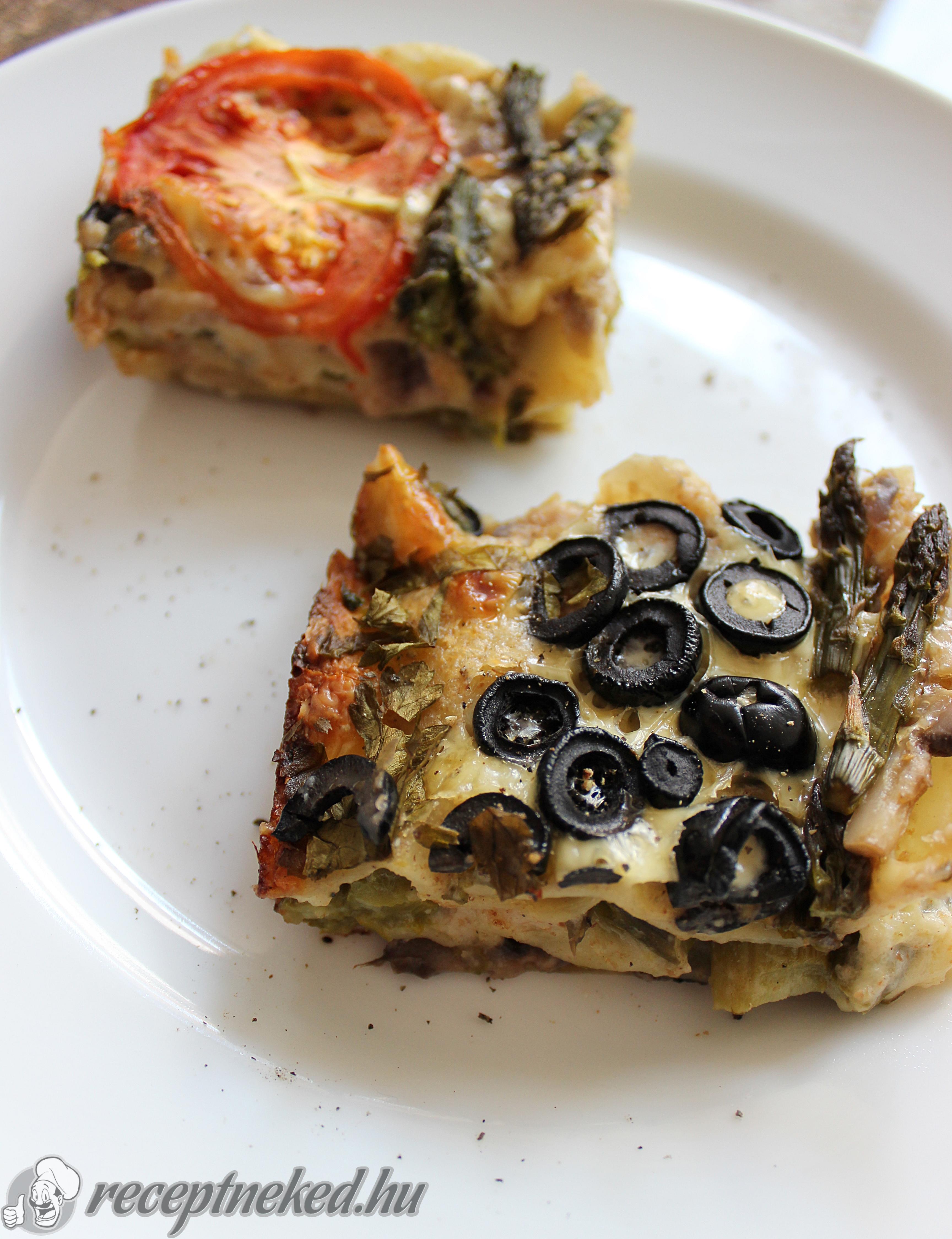 Mindeközben egy tűzálló tálat kenjünk ki kókusz-, vagy olívaolajjal, és fektessük le az aljára az első réteg lasagne lapot. Ezt locsoljuk meg egy kis besamellel, majd halmozzuk rá a gombánk felét. Jöhet egy újabb réteg tészta, melyre besamelt teszünk, és az összes megpirított spárgát ráhalmozzuk. Újabb tésztaréteg következik, megszórjuk a maradék gombával, és az összes maradék besamelt rátesszük, melyet szépen elsimítunk, majd bőségesen megszórunk reszelt sajttal.