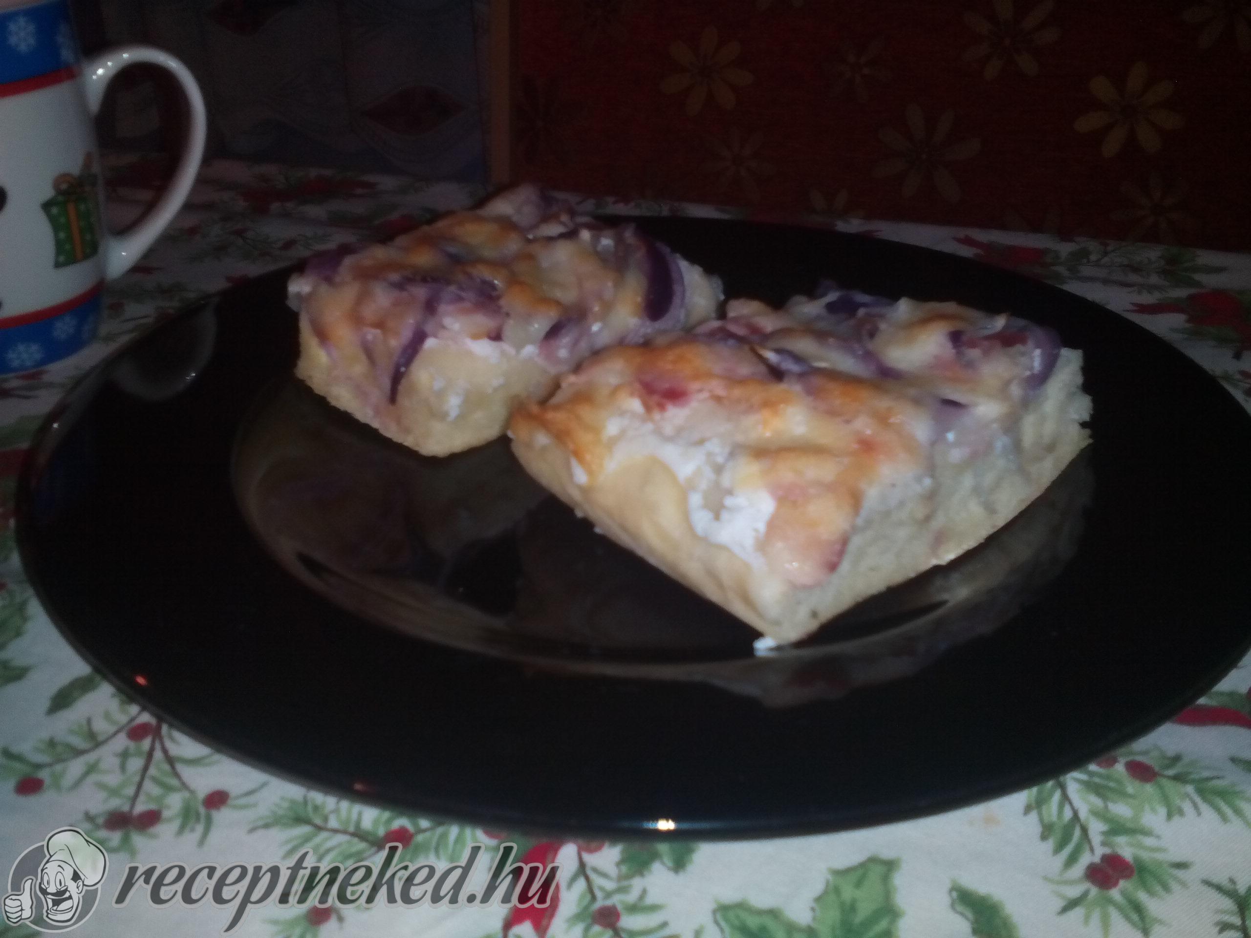Amíg kel a tészta, addig felszeleteljük a szalonnát, a hagymát és lereszeljük a sajtot.