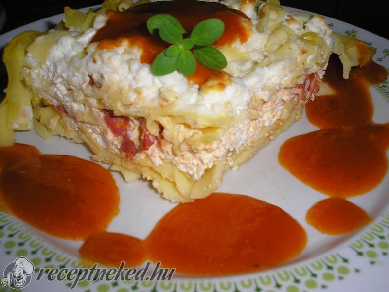 Túrós-kecskesajtos rakott tészta paprikaszósszal recept
