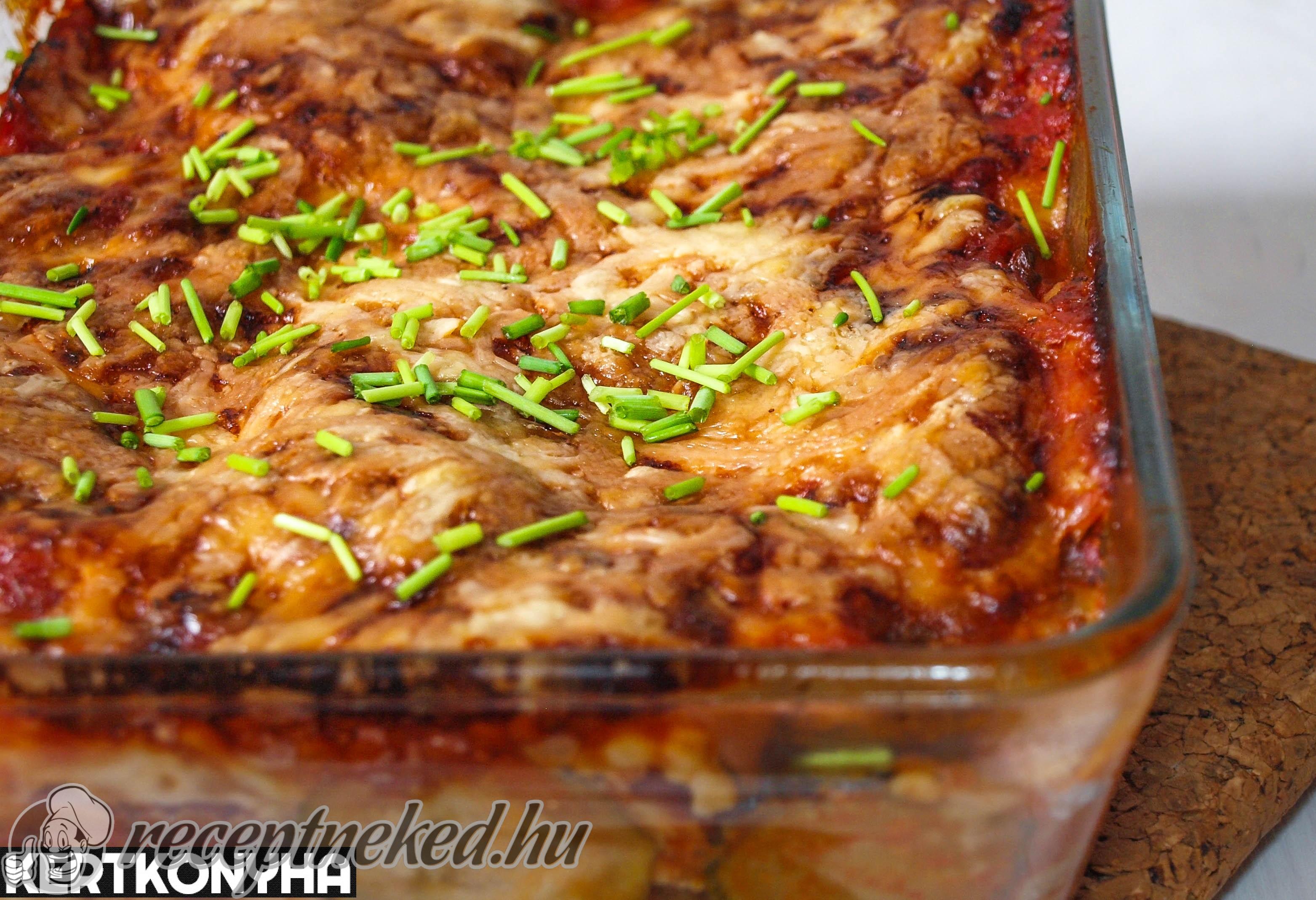 Karikázzuk fel a cukkinit és a padlizsánt, majd rétegezzük le a zöldségeket a szósszal és a nyers tésztával. A tetejére kerüljön jó sok sajt. Ebből a mennyiségből egy kb. 20×30-as sütőtálat tudunk megtölteni.