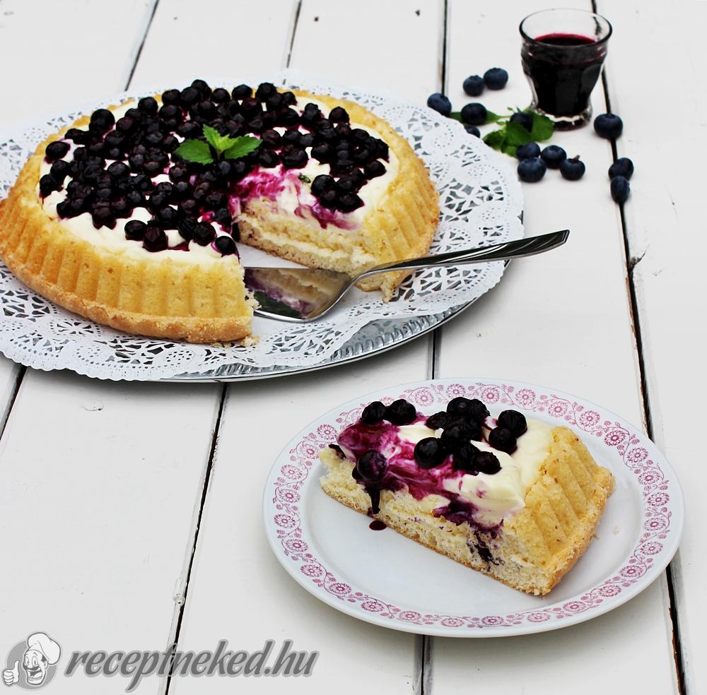 Ezután a torta tetejére kanalazzuk rá a karamellizált áfonyát, majd tálalásig tegyük be a hűtőbe.