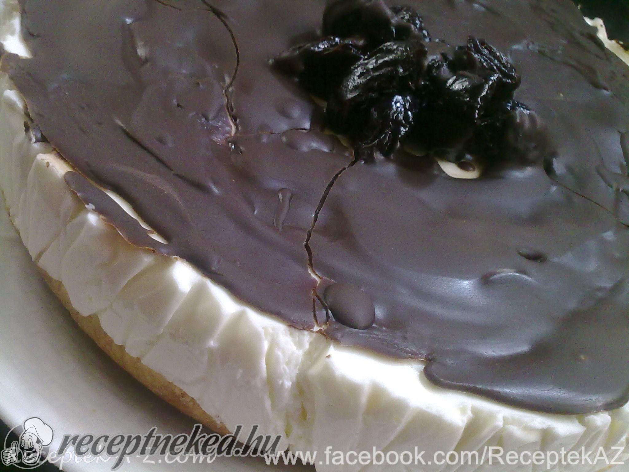 A zselatint hozzáöntjük a többi krémhez és mixerrel alaposan átkeverjük. Egy kevés tölteléket teszünk a torta aljára, majd a félbevágott szilvákat ráfektetjük. A megmaradt tölteléket ráöntjük a szilvákra, kicsit elsimítjuk. A tortát hideg helyen hagyjuk összeállni. Ha már megkötött a töltelék, leöntjük csokimázzal és visszadugjuk a hűtőbe.