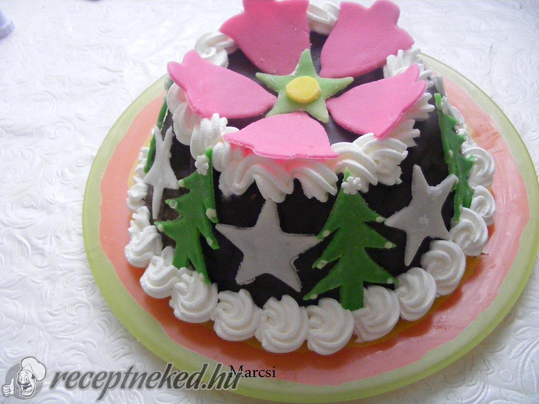 A csokoládét felolvasztjuk a margarinnal és olajjal, majd leöntjük a tortát, és ízlés szerint díszítjük.