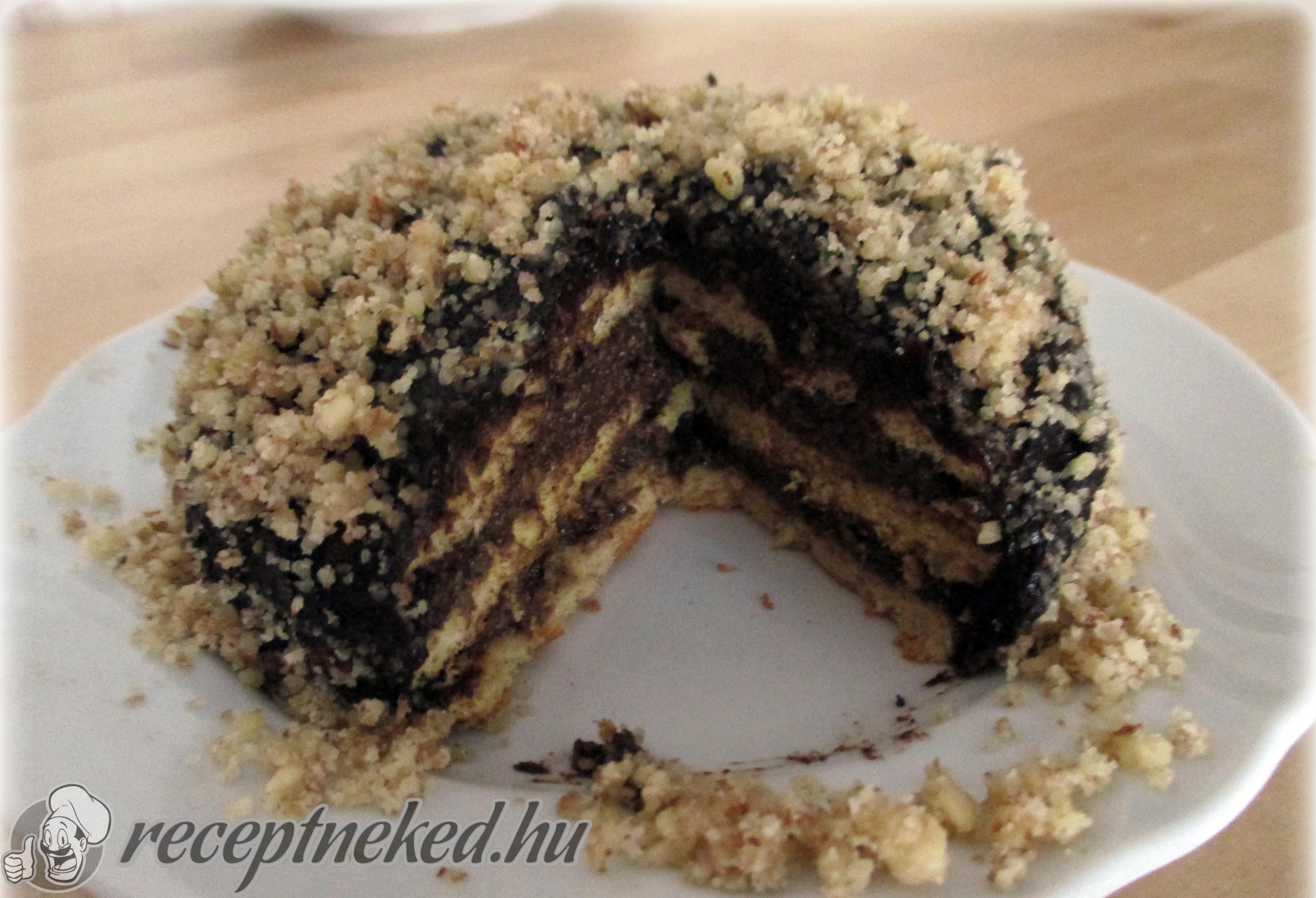 A piskótalapokat az avokádós krémmel megkenve rétegezzük egymásra, kívülről pedig a datolyás krémmel kenjük be. Végül darált dióval szórtjuk be és néhány órára hűtőbe tesszük.
