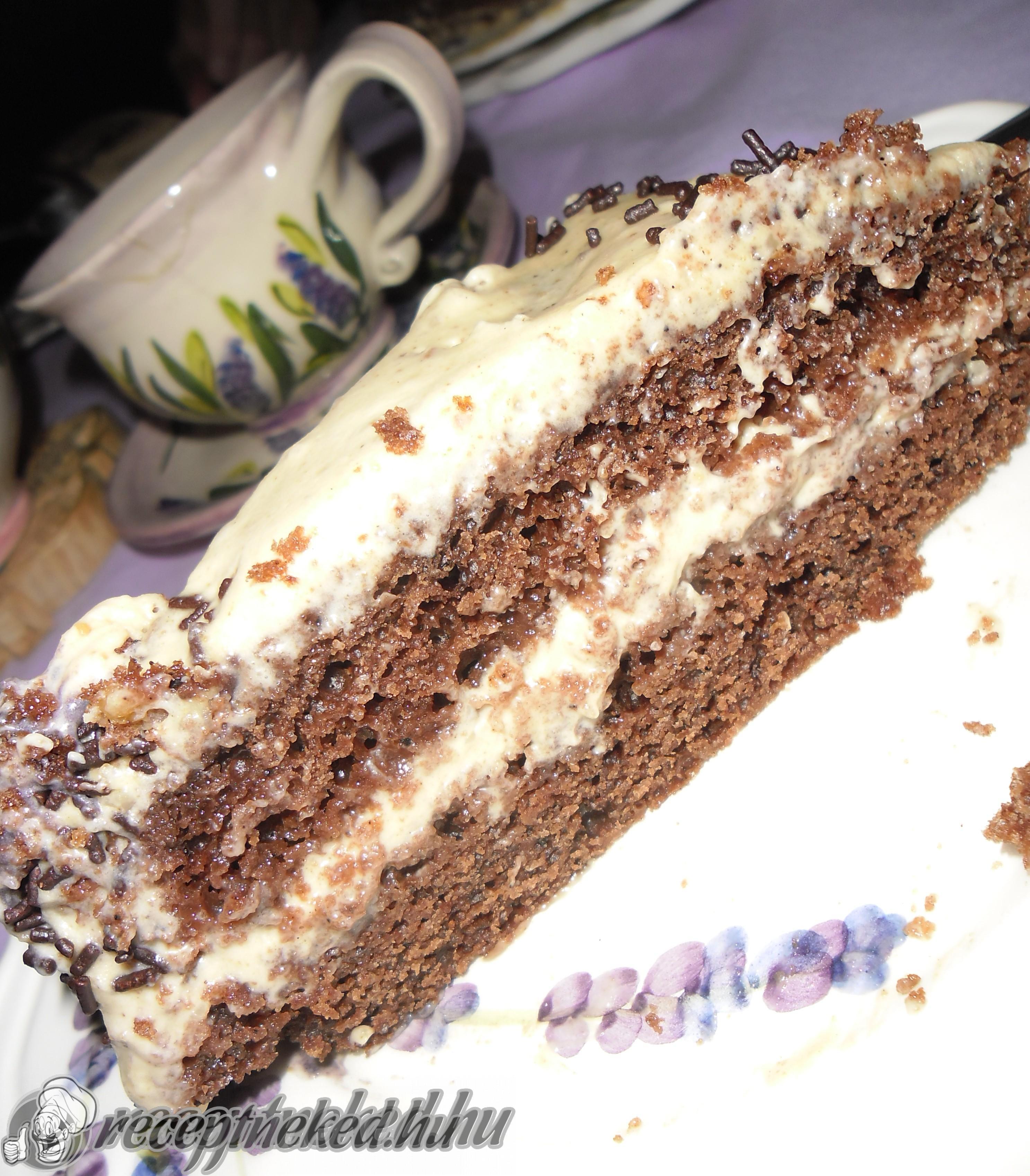 [box style=”info”]Ha az összeállítás közben nagyon folyna a krém, ne essünk kétségbe, mert a hűtőben még sokat fog szilárdulni. Másnap nagyon szépen lehet szeletelni. :)[/box]