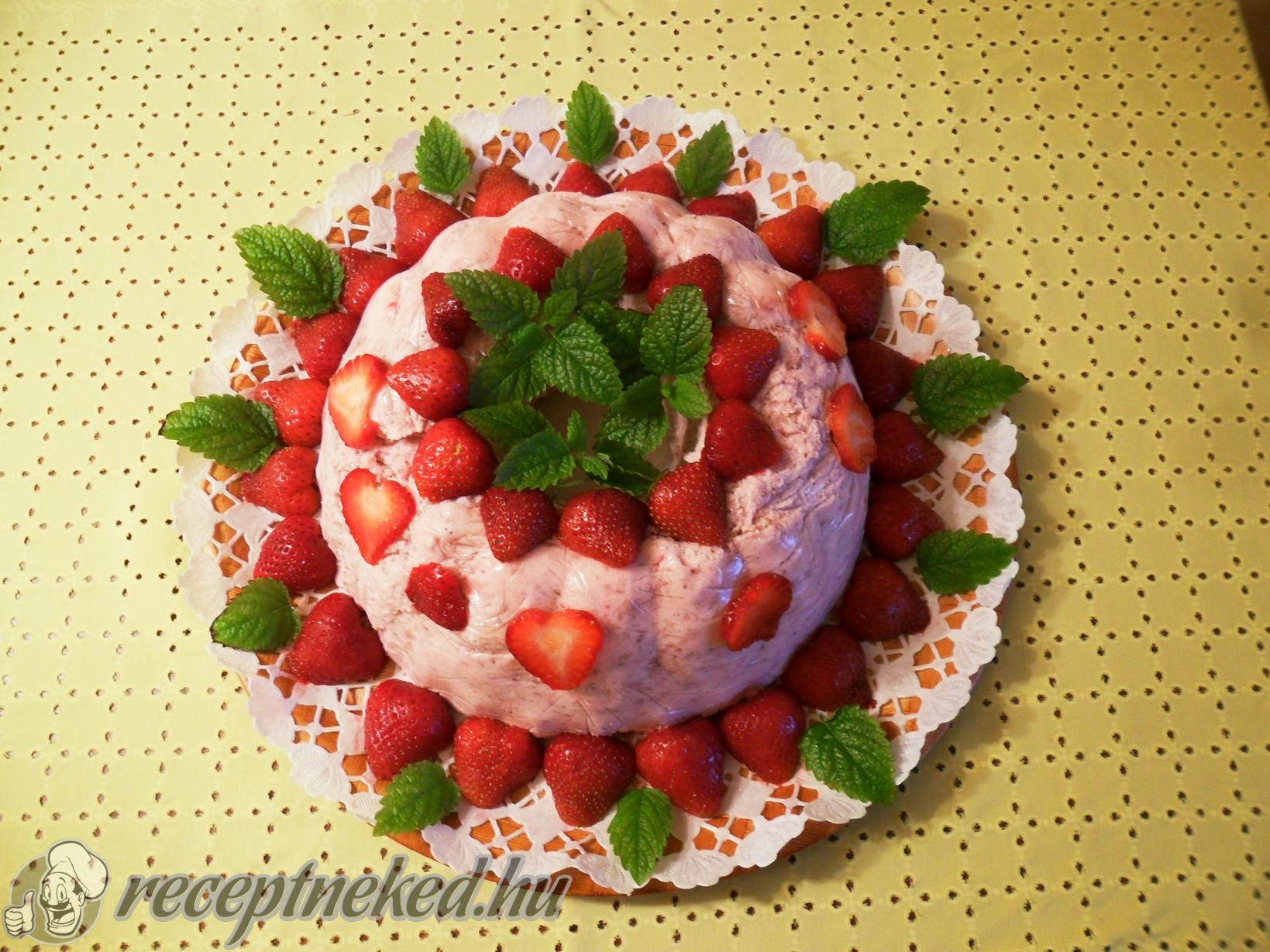 A megmosott és feldarabolt epret a cukorral kb 5 percig forraljuk, majd botmixerrel pürésítjük. A folyadékot átszűrjük, hogy a magok ne kerüljenek bele. A vizes zselatint mikróban feloldjuk, majd az eperhez keverjük.