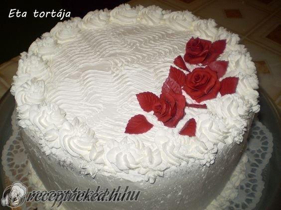 A tészta hozzávalóiból a szokásos módon lapot sütünk egy 26 cm átmérőjű formában. Kihűtjük, majd három részre vágjuk a lapot.