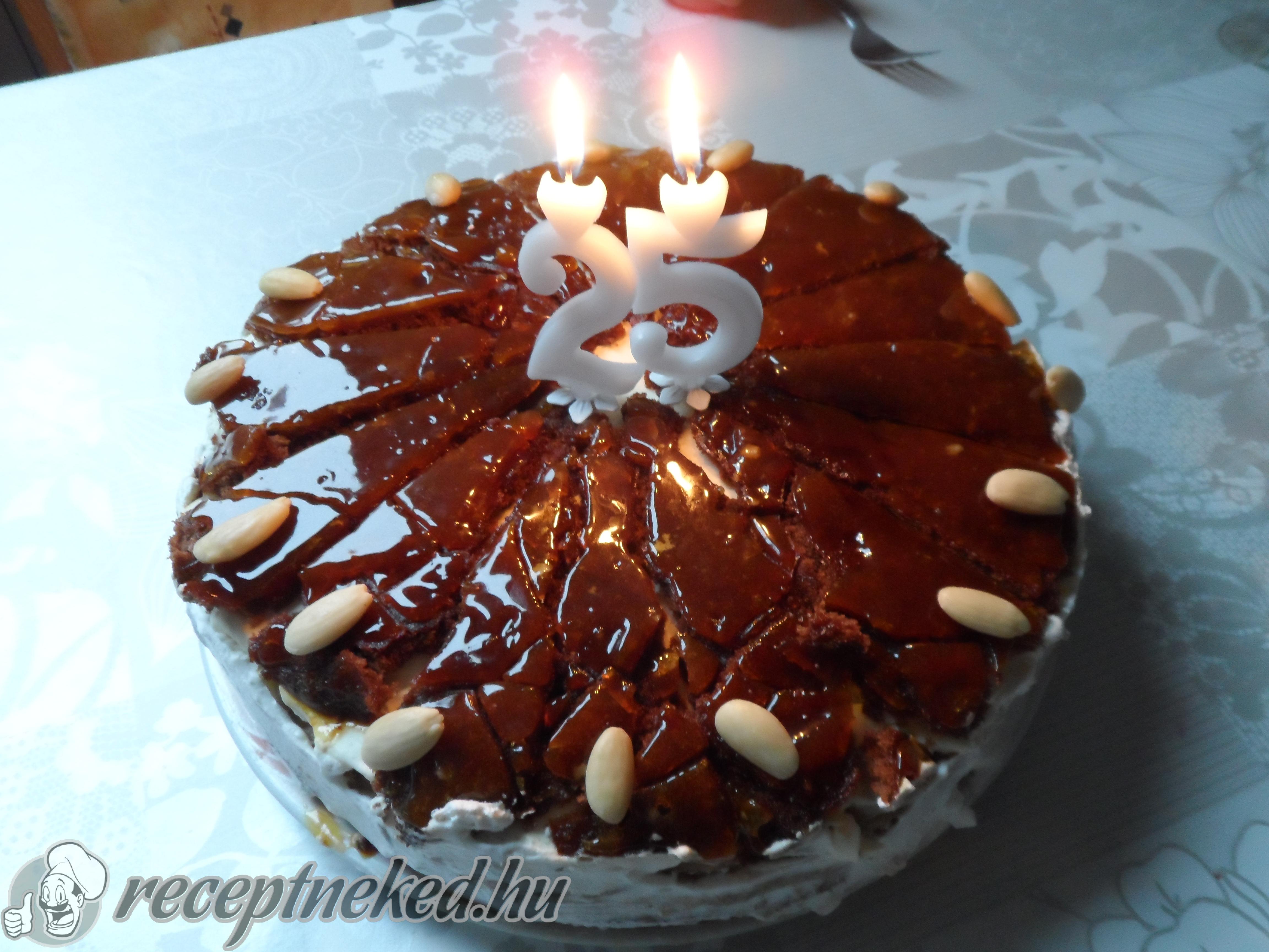 A kihűlt almakompótot leszűrjük, és a gesztenyés piskótára szeletenként, szorosan egymás mellé helyezzük. A vaníliakrémhez tejszínhabot és feloldott zselatint keverünk, majd ráöntjük az almaszeletekre. Hűtőben pihentetjük, amíg teljesen kihűl. Tálalás előtt tejszínhabbal, piskótalapokkal vagy babapiskótával díszítjük.
