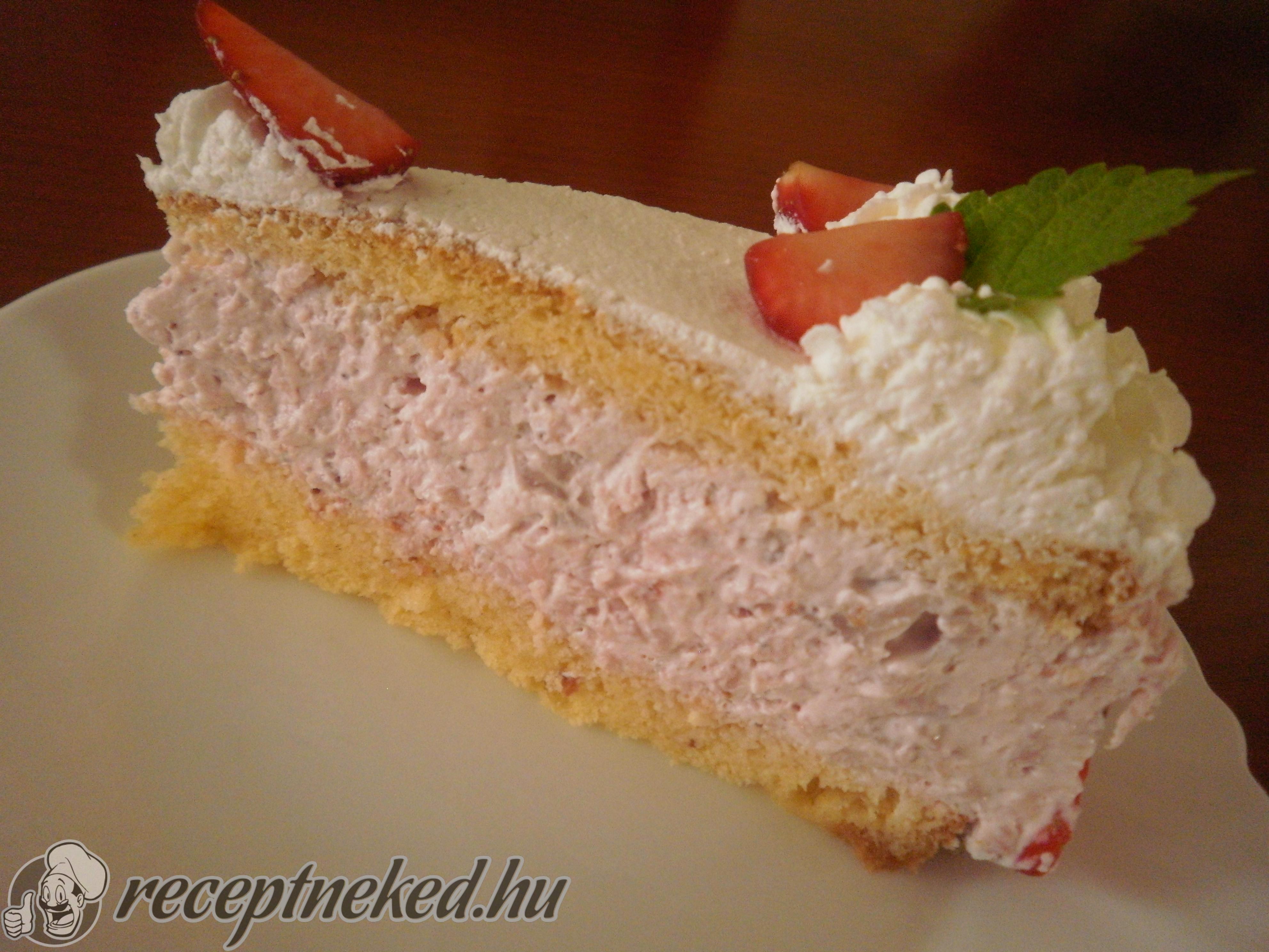A hozzávalókból a szokásos módon piskótalapot sütünk, mikor kihűlt két lapra vágjuk. Az epret megmossuk, pár szemet félre teszünk a díszítéshez, a többit feldaraboljuk és botmixer segítségével pürésítjük. A zselatint beáztatjuk 6 ek. vízbe vagy eperlébe és állni hagyjuk. A mascarponét elkeverjük a joghurttal, a cukorral és a vaníliás cukorral.