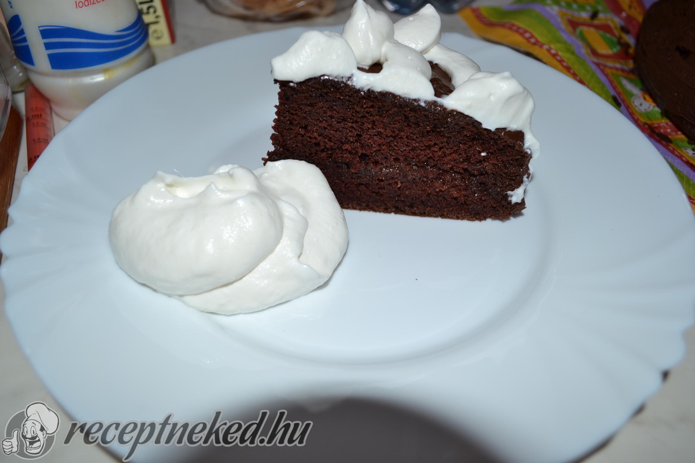 Az egyik tálban összekeverjük a lisztet, a szódabikarbónát, a sütőport és a kakaót. A másikban habosra keverjük a tojást a cukorral, majd hozzáadjuk a habtejszínt, a vaníliát, a tejet és a vizet is. A lisztes keveréket beleszitáljuk, és sima, egynemű masszává dolgozzuk.