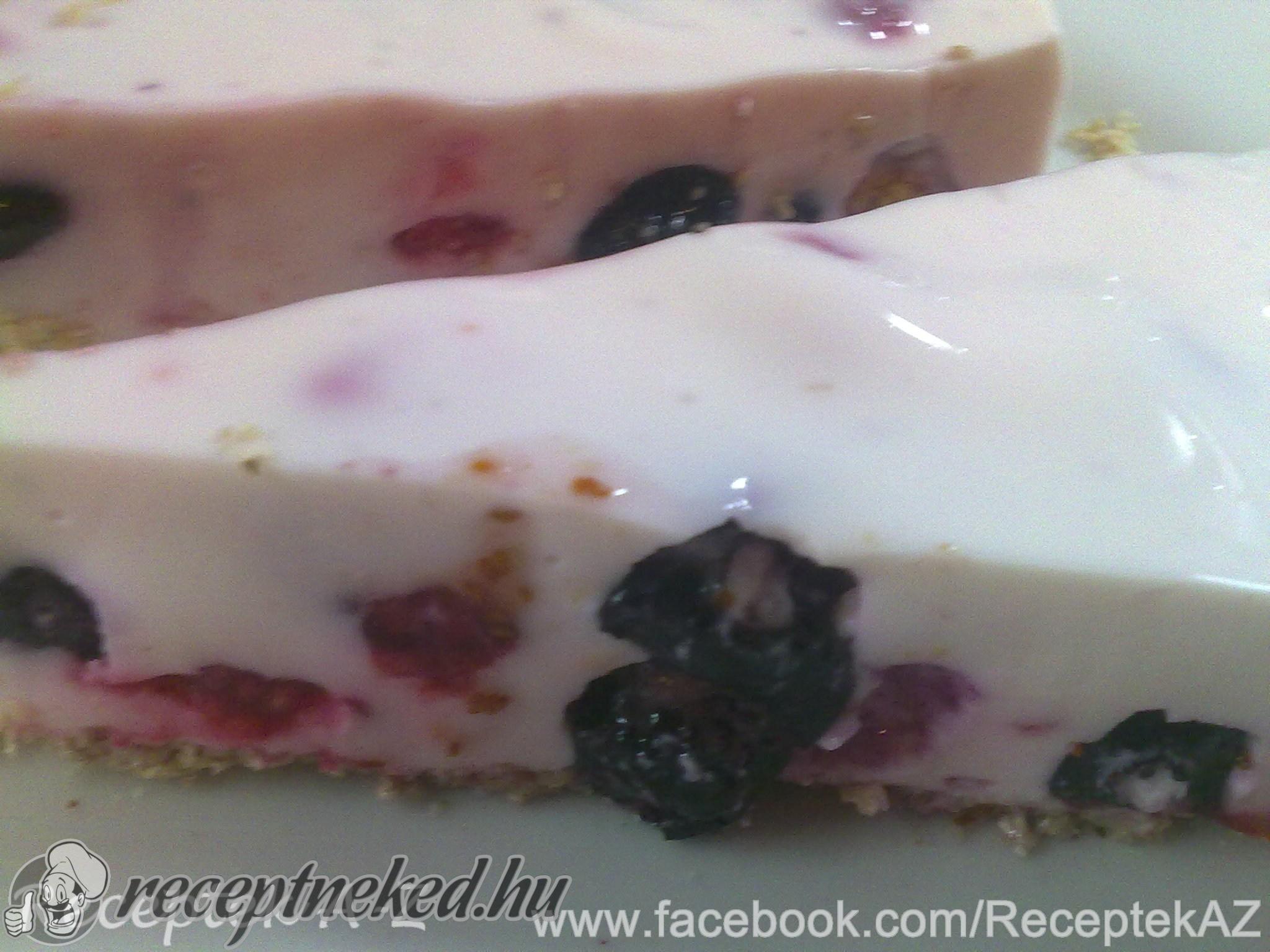 A krémhez a tejszínt a fixálóval keményre verjük és hozzáadjuk a joghurtot és vaníliás cukrot.