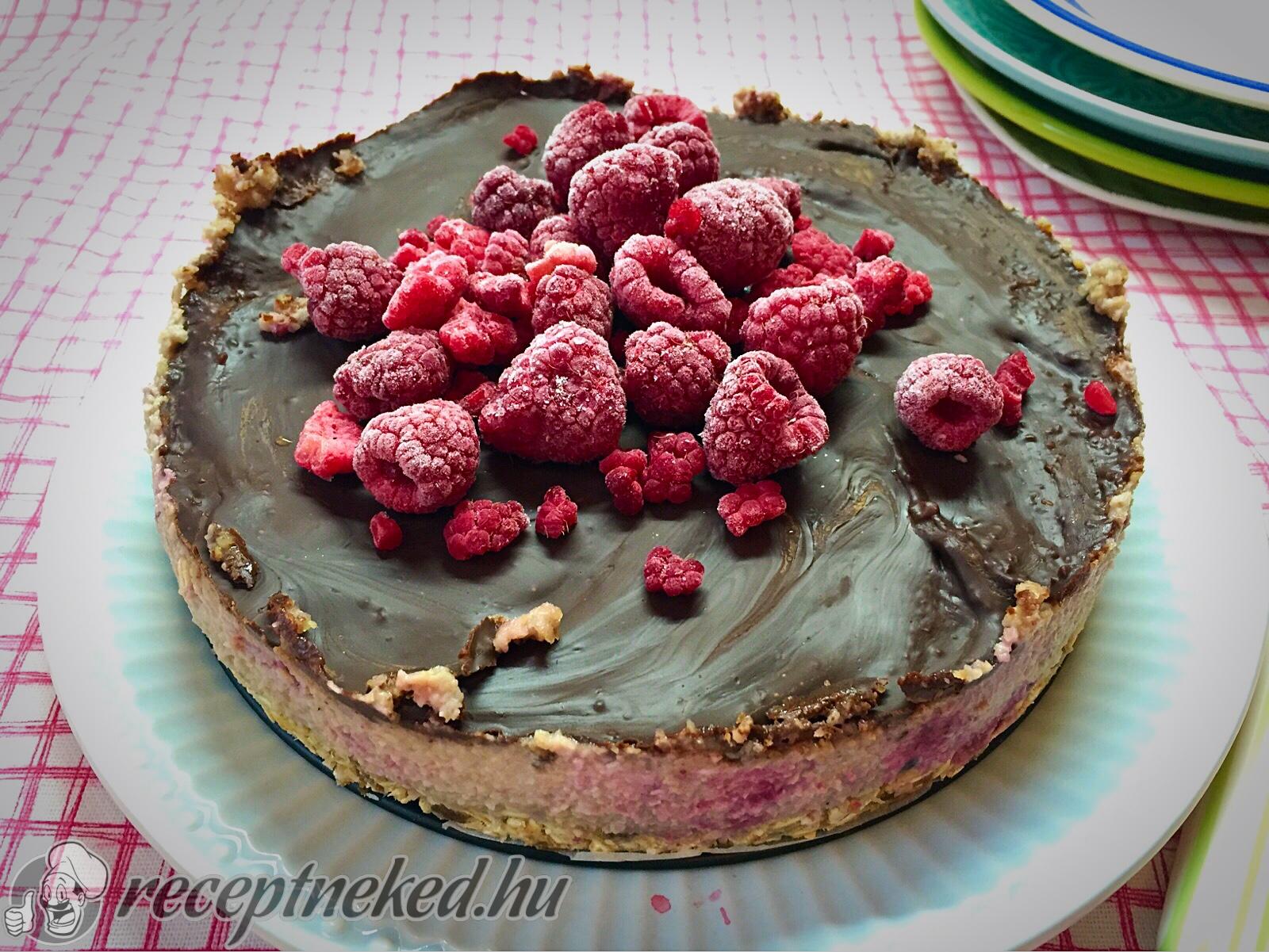 Sütőpapírral kibélelünk és enyhén kiolajozunk egy 23 cm-es kapcsos tortaformát. Beleöntjük a masszát és 35 percig, tűpróbáig sütjük, majd kihűtjük.