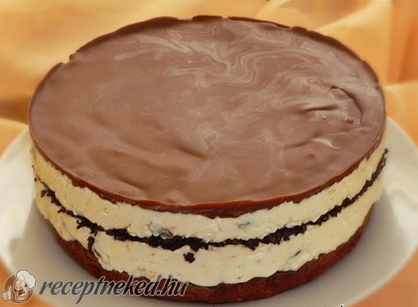 A tortabevonó csokoládét gőz fölött felolvasztjuk, majd simára keverjük. A hűtőből kivett torta tetejére csorgatjuk, majd visszatesszük pár percre a hűtőbe, hogy teljesen megdermedjen.