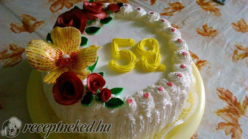 Ha kihűlt a piskótánk, akkor 3 részre vágjuk. Az alsó réteget megkenjük a meggyes krémmel, a másodikat a sárga krémmel, ha marad még egy kicsi a sárgából, akkor mehet a tetejére is, majd a habbá vert tejszínnel bevonjuk az egész tortát gazdagon.