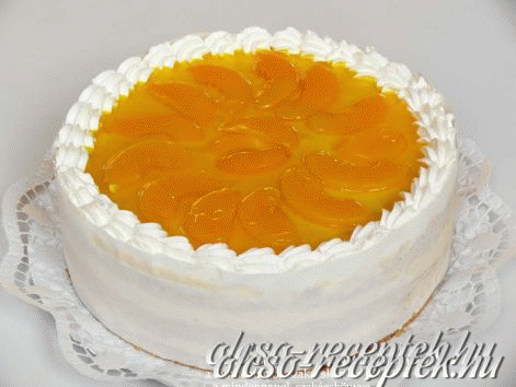 A torta zselét felforralom, addig még kihűl szobahőre addig felszelem a barackokat és a torta tetejére helyezem, majd mehet rá a torta zselé. Egy 10-15 perc múlva lehet is díszíteni. A maradék habtejszínnel ízlés szerint díszítjük a tortát.