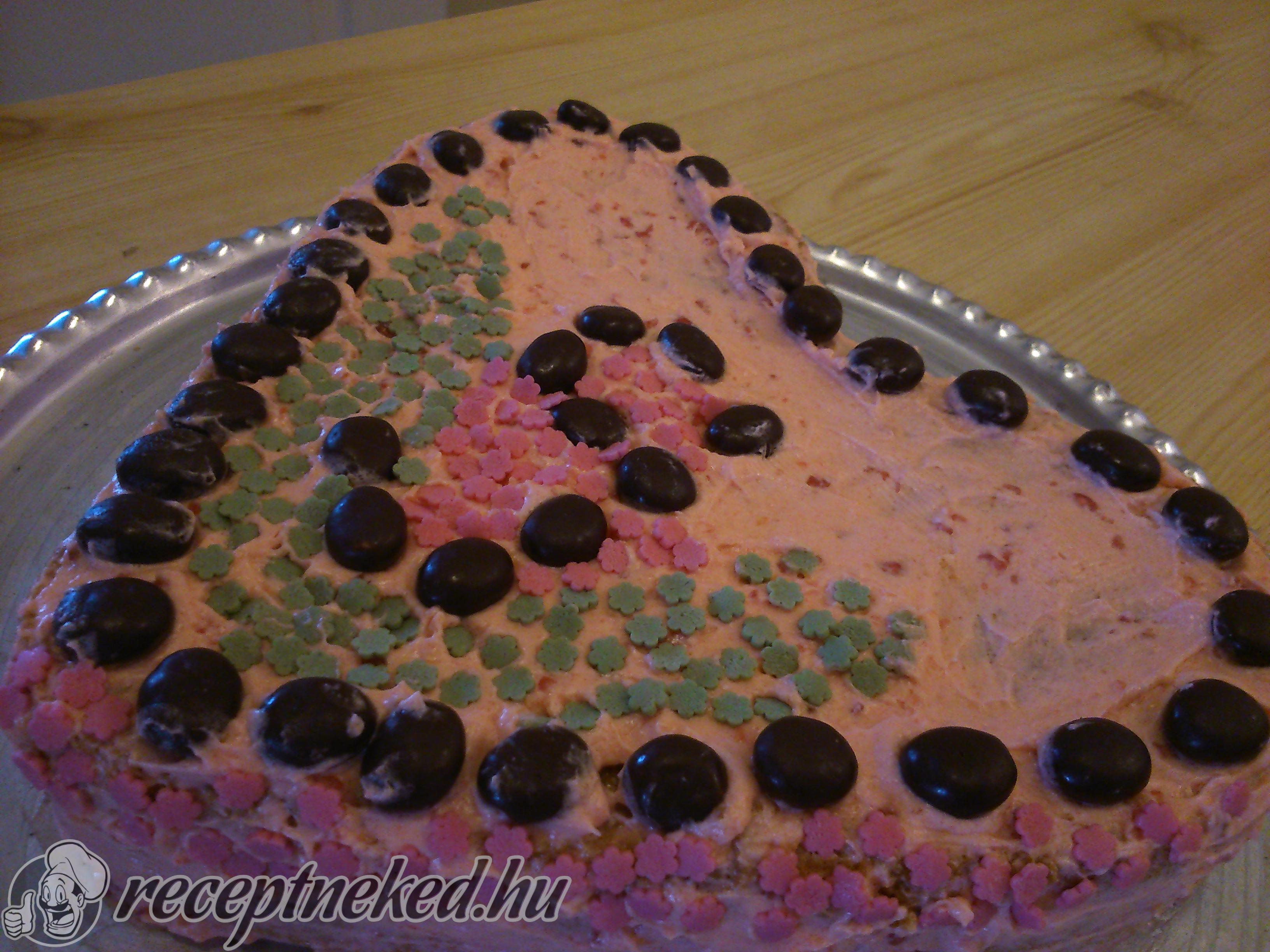 [box style=”info”]Én évfordulóra készítettem a tortát, a csokigolyóval számot is lehet formázni, illetve a virágokkal más díszeket is lehet készíteni. Csak tálalás előtt helyezzük rá a díszeket.[/box]