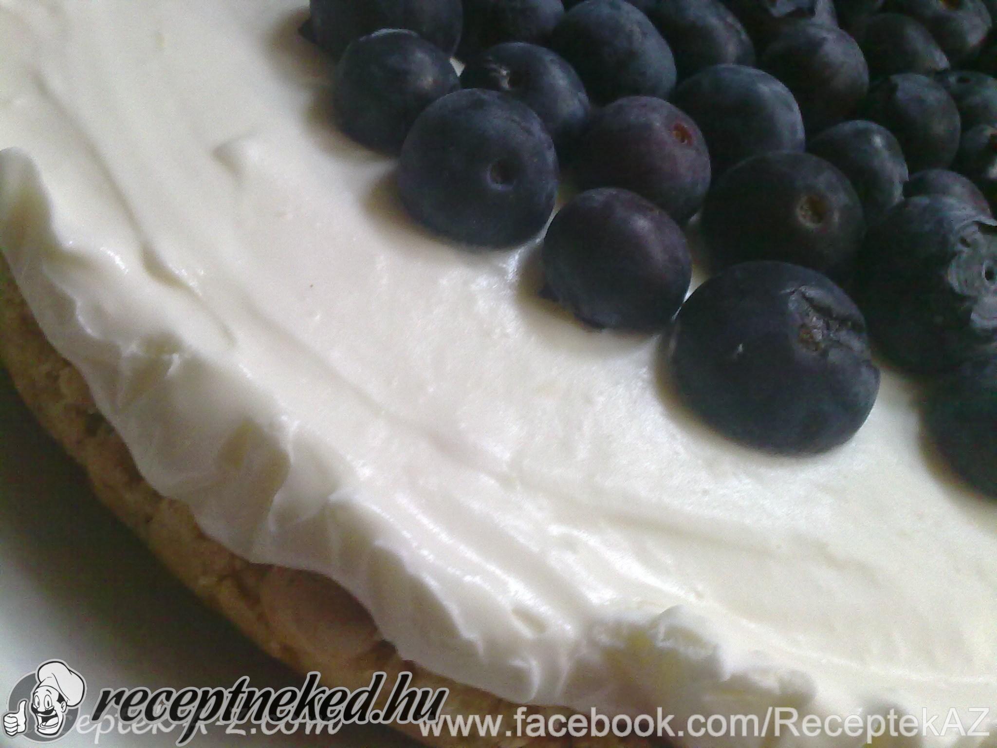 A zselatint hozzáöntjük a többi krémhez és mixerrel alaposan átkeverjük. Ráöntjük a kekszes alapra. A lemosott és lecsepegtetett áfonyát rátesszük a torta tetejére. A tortát pár órára a hűtőbe rakjuk majd tálaljuk.