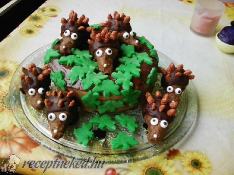 Az elkészített sünikkel és marcipánlevelekkel díszítjük.