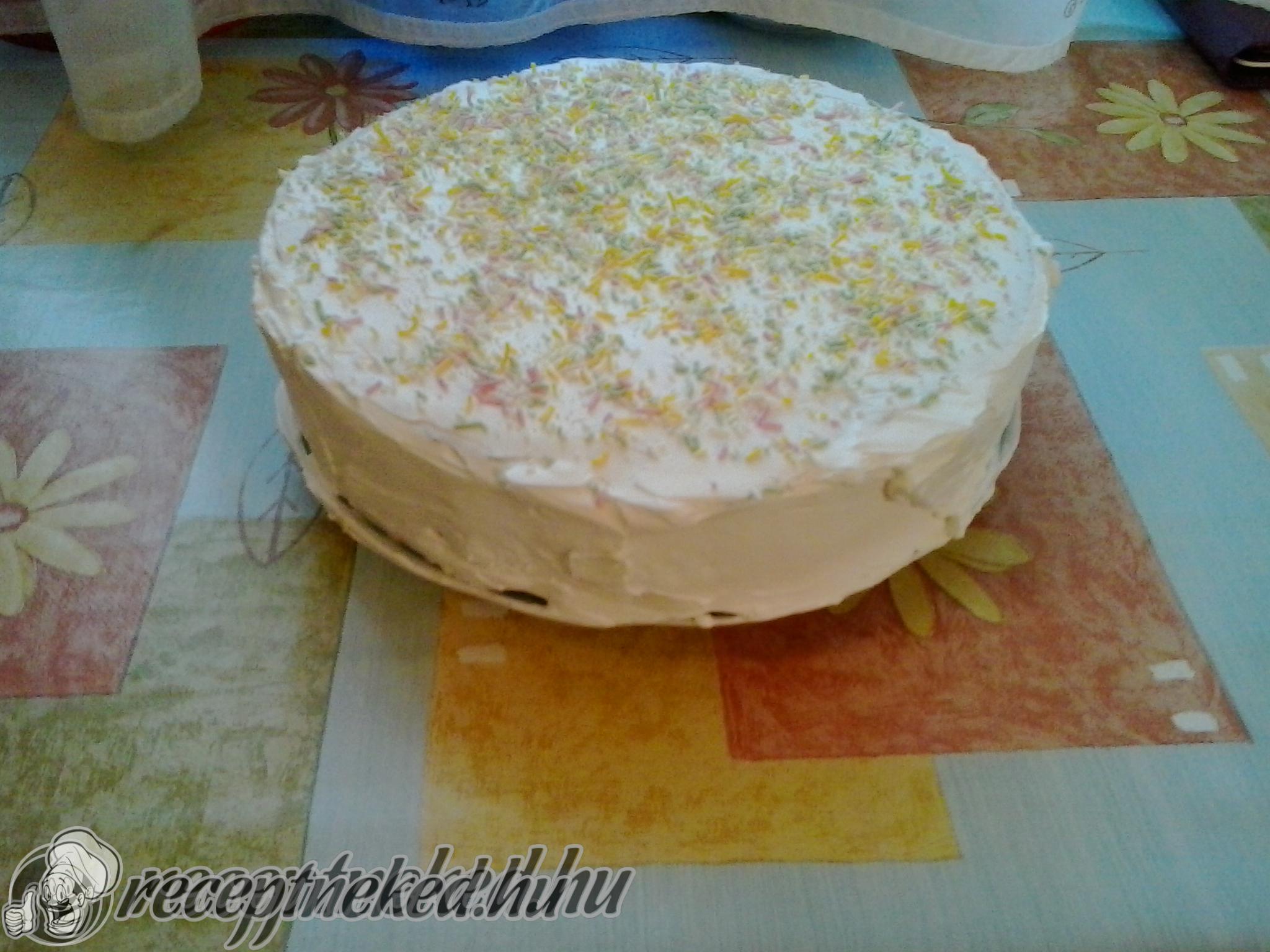 [box style=”info”]A babapiskótákat egy kis likőrrel vagy rummal meg lehet locsolni,ez így érdekesebb ízt kölcsönöz a tortának.A tetejére cukrászhabot tettem,de nem szükséges, mert hab nélkül is lehet tálalni.[/box]