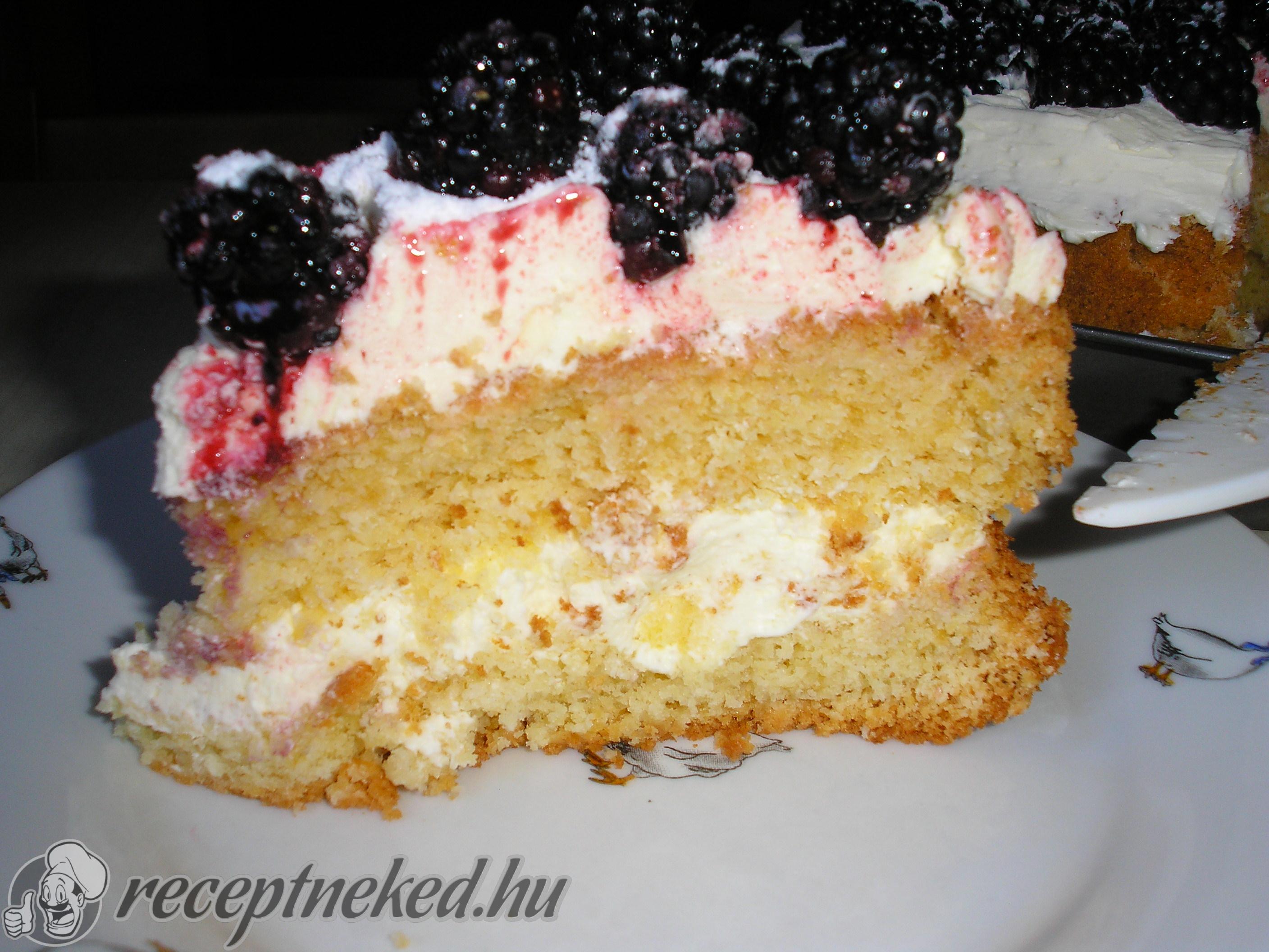 Megkenjük a tortalapot, és a tetejét is bevonjuk a krémmel. Kirakjuk szederrel, és jól behűtjük. Ezután szervírozzuk.