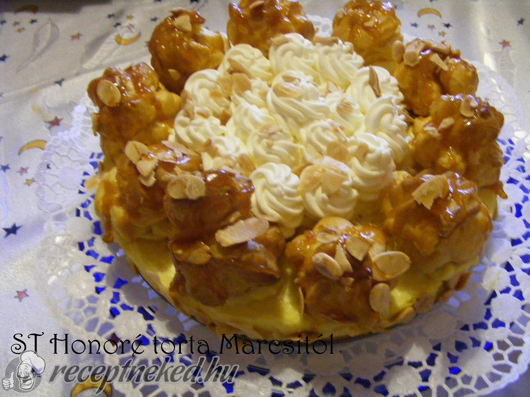 A habtejszínt keményre verjük cukorral, és a torta közepére halmozzuk. Az oldalát mandulaforgáccsal díszítjük.