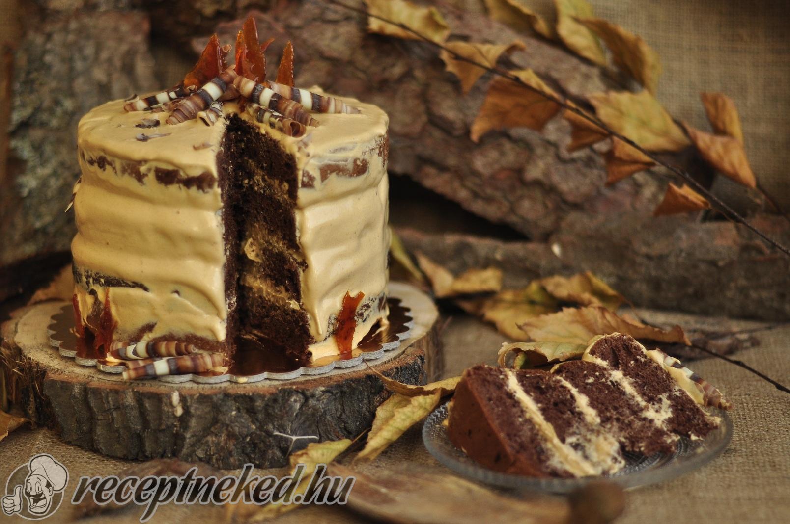 Töltsük meg a lapokat a karamell krémmel, és fedjük be vele a tortát.