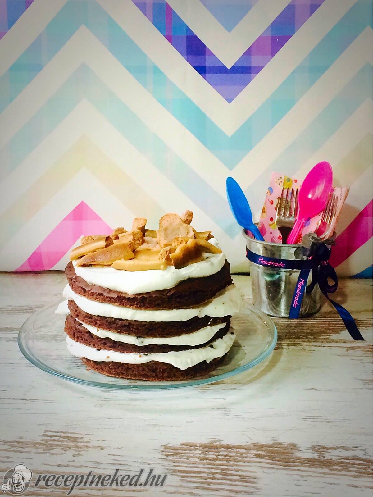 A piskótalapokat töltsük meg a krémmel. A legfelső piskótára is kenjünk belőle, majd díszítsük az összetördelt tojáshab csíkokkal.