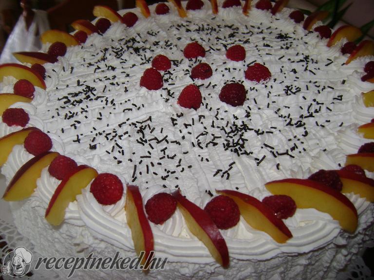 A torta összeállításakor az alsó piskótalapra kenjük a krém harmadát, belenyomkodjuk a választott gyümölcsöket, majd egy réteg tejszínhabot is kenünk rá. Ráhelyezzük a második piskótalapot, és ugyanígy járunk el. A harmadik piskótalappal zárjuk le a tortát. A maradék krémmel bevonjuk a torta oldalát és tetejét, majd ízlés szerint díszítjük tejszínhabbal és friss gyümölcsökkel.